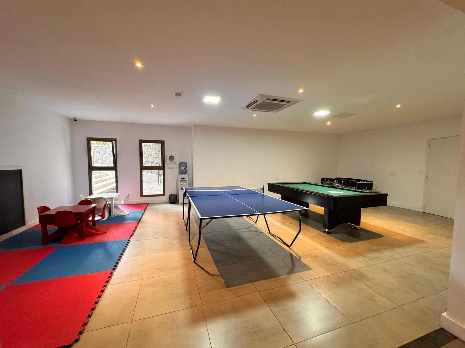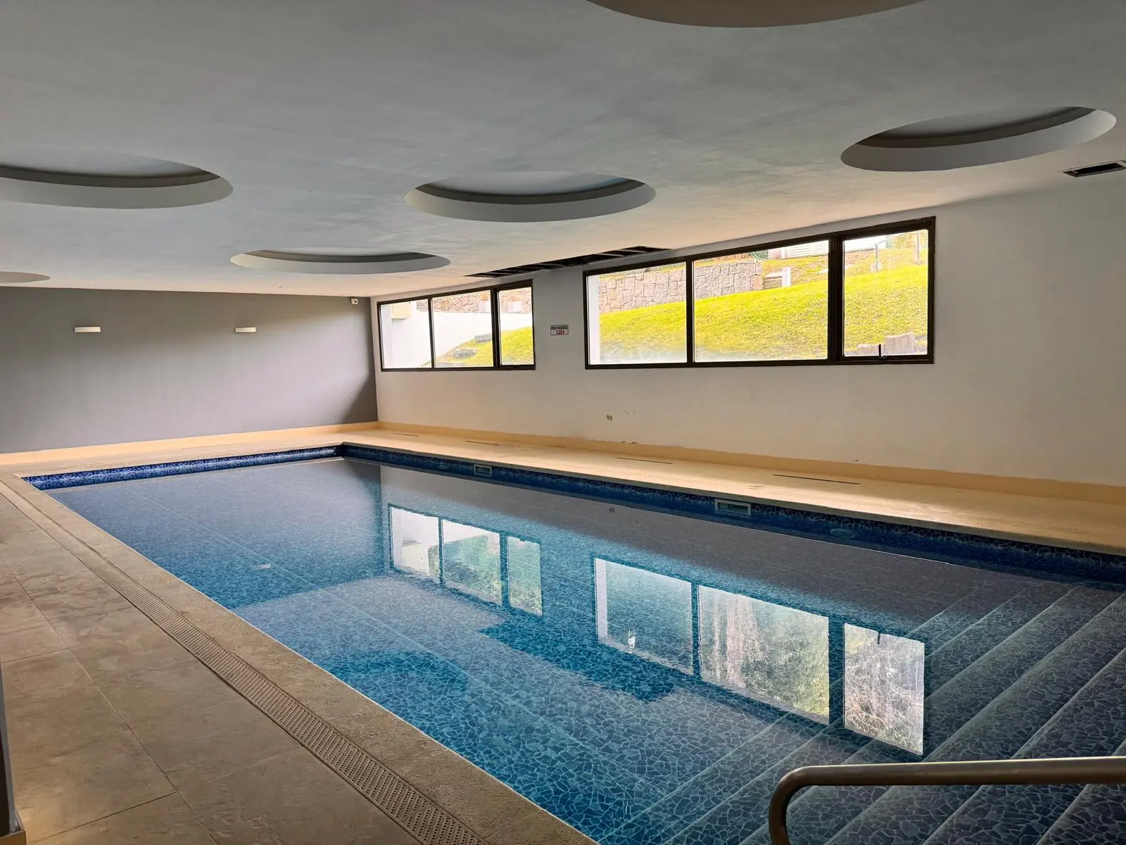 Ubicado en un edificio de alto nivel, ofrece amenities exclusivos: piscina interior climatizada con sauna, piscina exterior, gimnasio, sala de juegos, parrillero de uso común, servicio de mucama diario y recepción 24 horas.