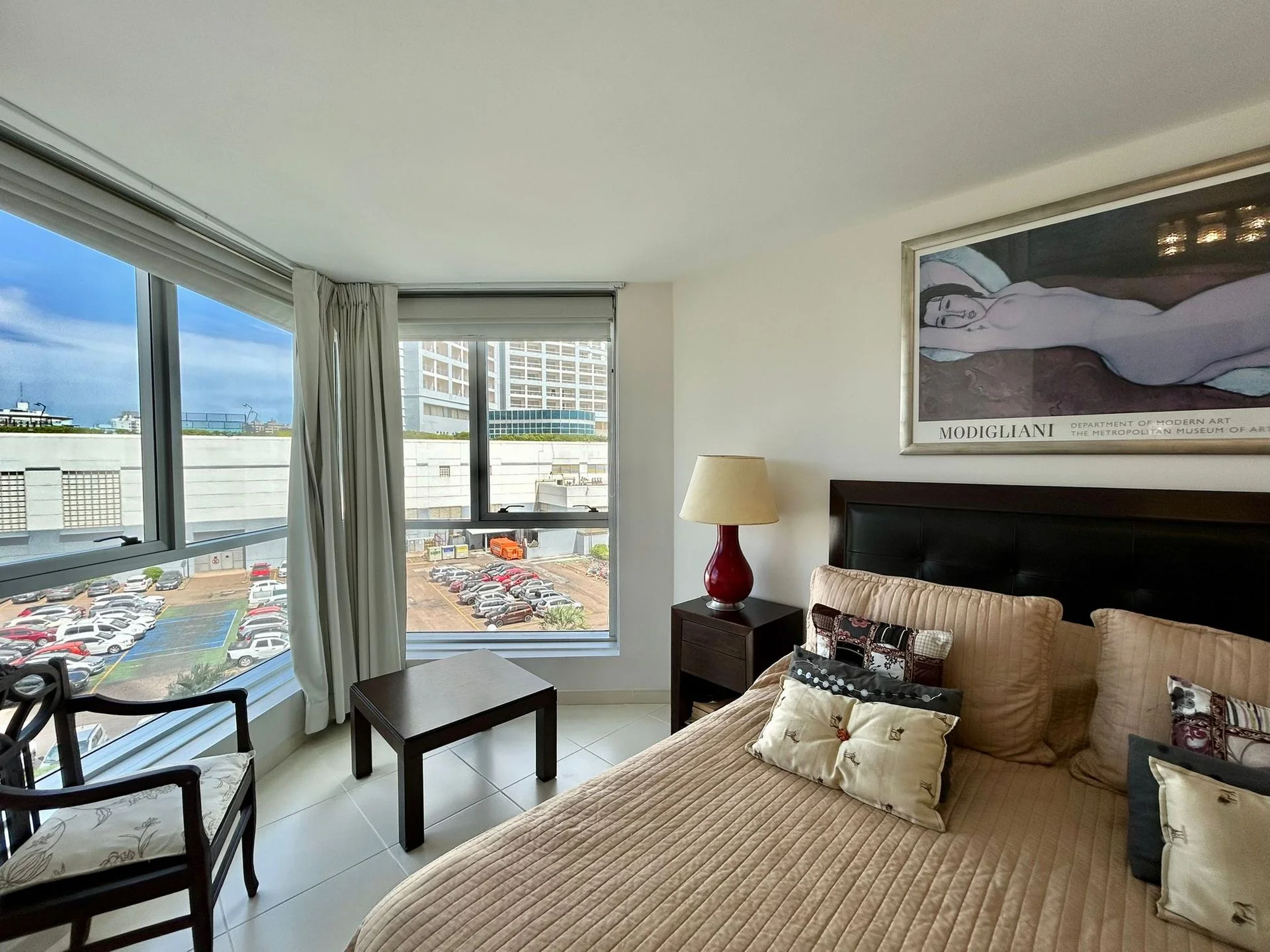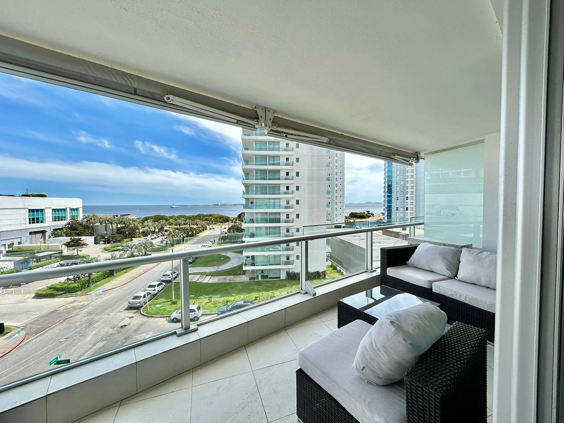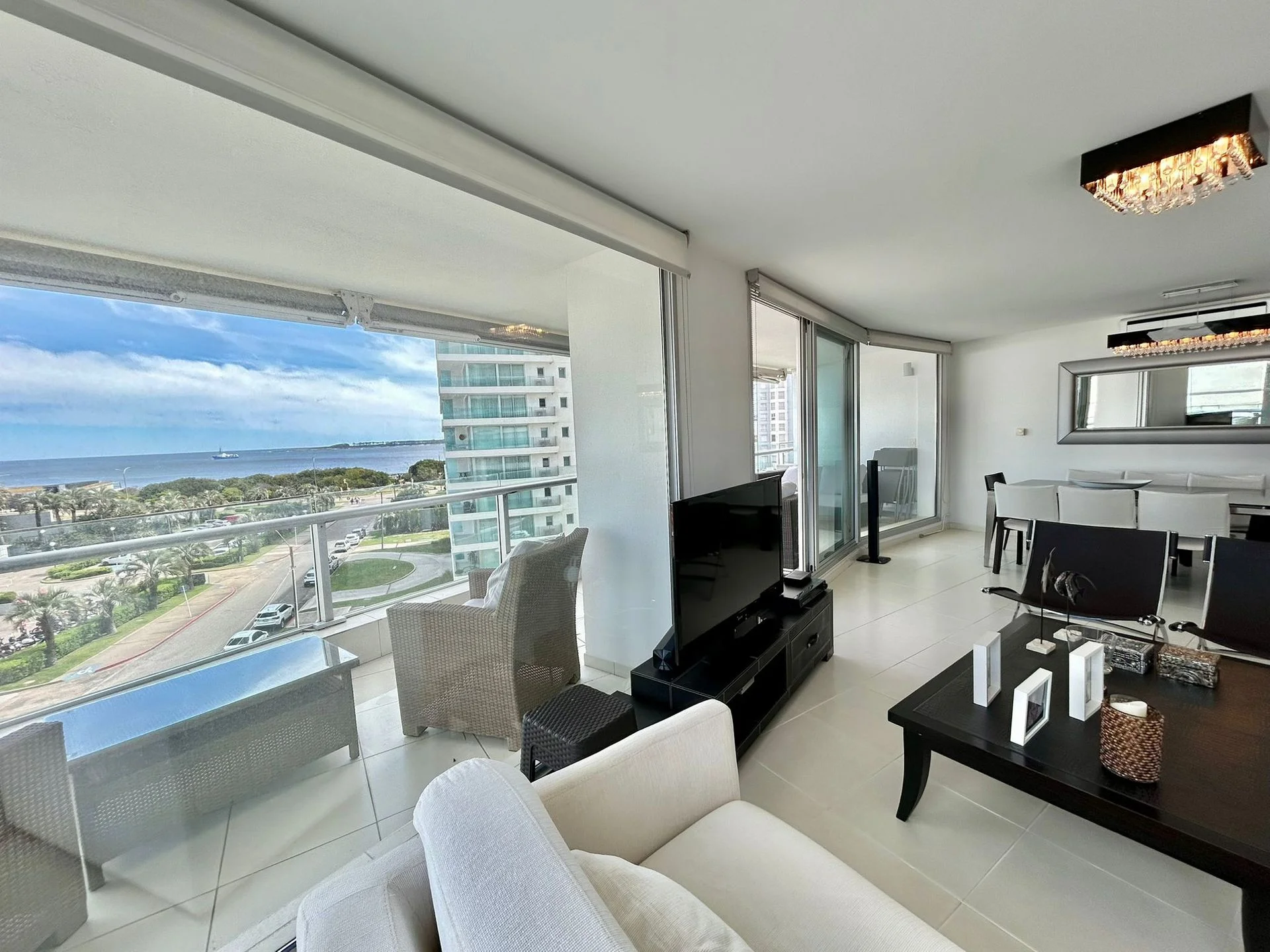 cuenta con tres dormitorios en suite, toilette, cocina definida, amplio living-comedor y terraza con vista directa al mar, sobre la icónica Playa Mansa.