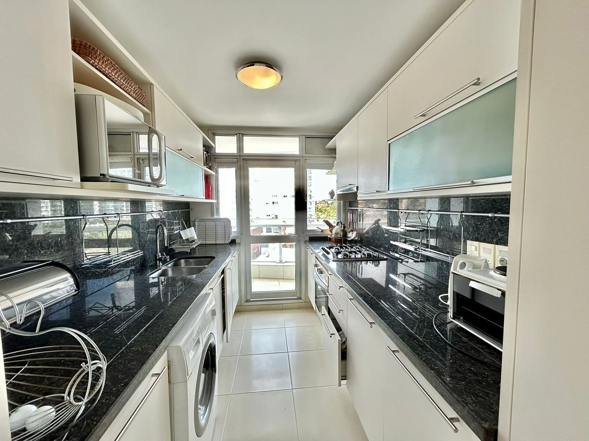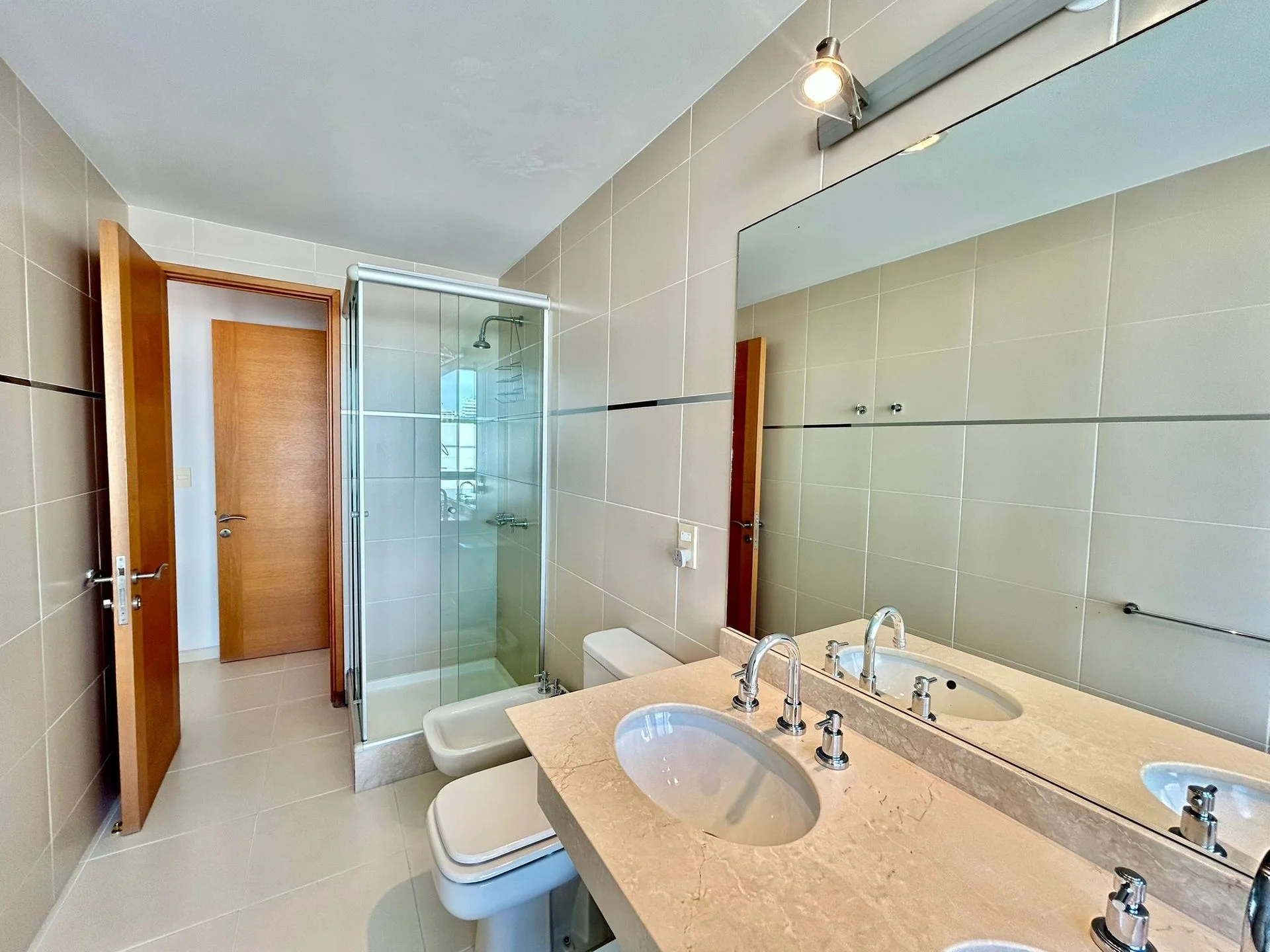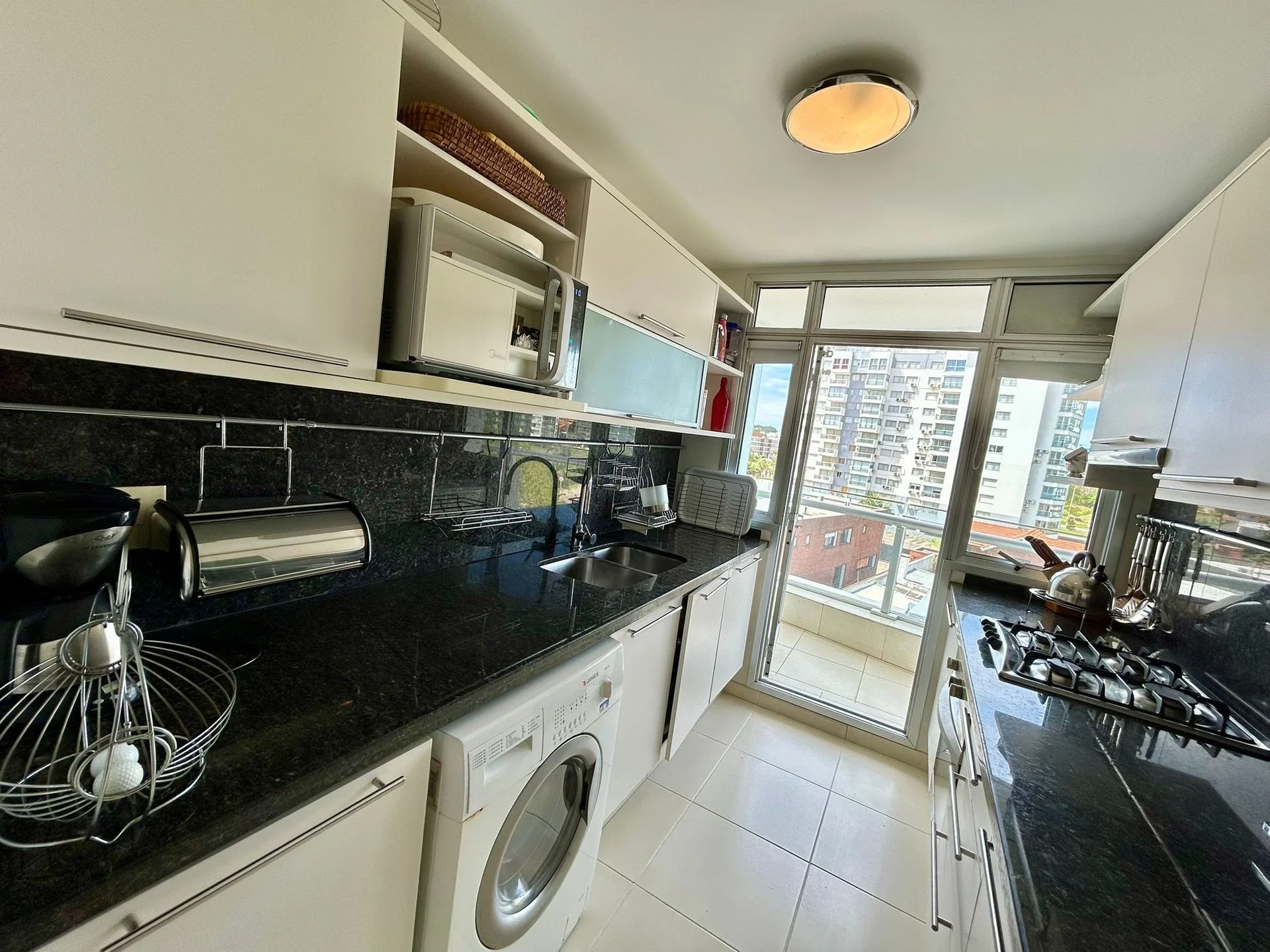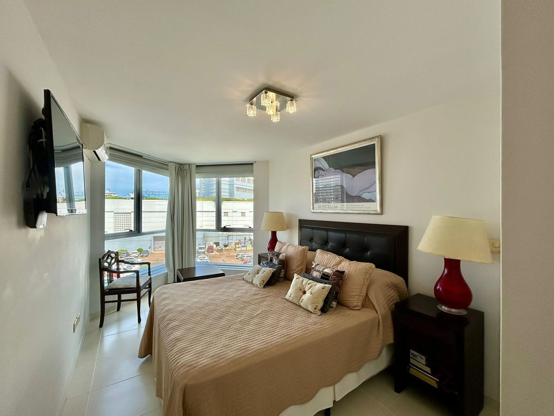 cuenta con tres dormitorios en suite, toilette, cocina definida, amplio living-comedor y terraza con vista directa al mar, sobre la icónica Playa Mansa.