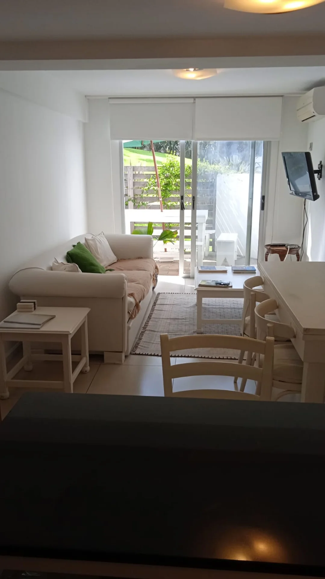Acogedor apartamento de 2 suites, living comedor con cocina integrada muy equipada, patio cercado con salida al jardín, solarium y piscina. Ropa de cama, Wifi, TV Cable, servicio de mucama diario, recepción 24 horas, vigilancia por cámaras 24 horas, servicio de playa en temporada alta.
