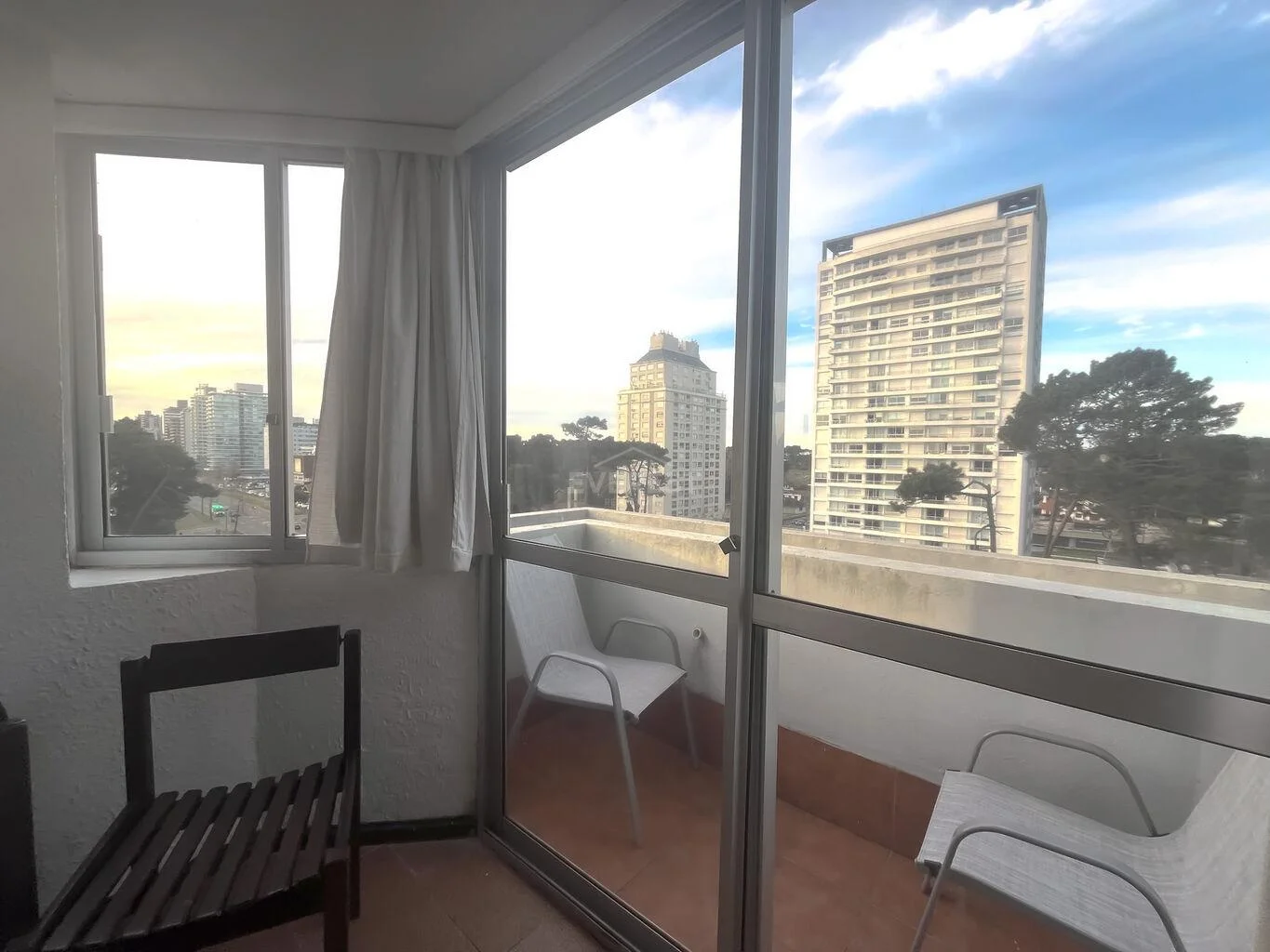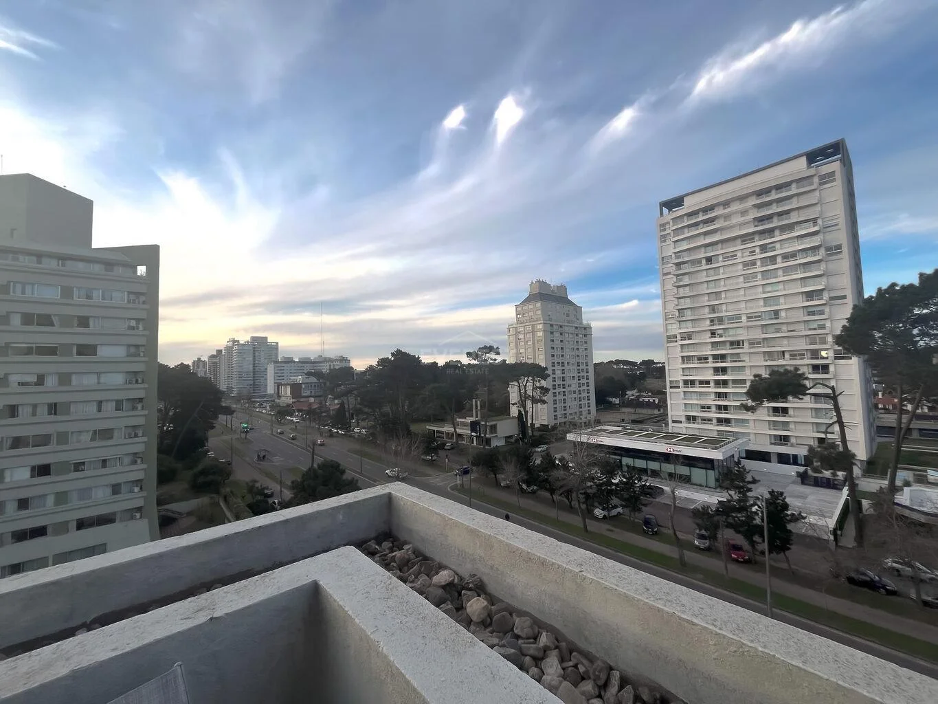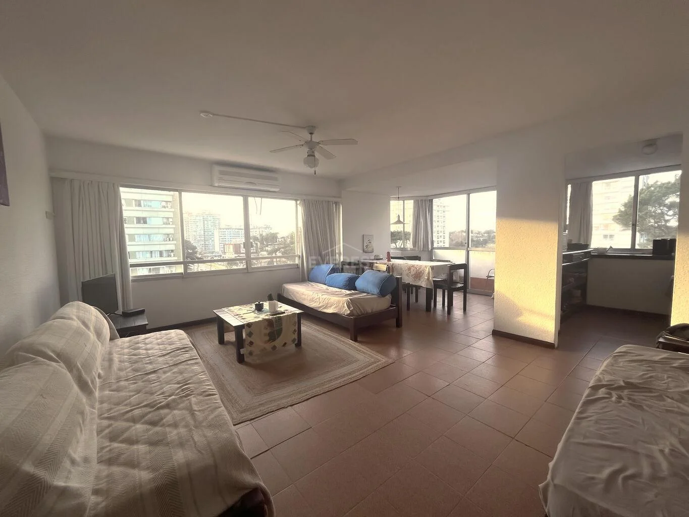 Amplio living comedor con cocina integrada con salida a terraza, orientación Norte. Mucho Sol