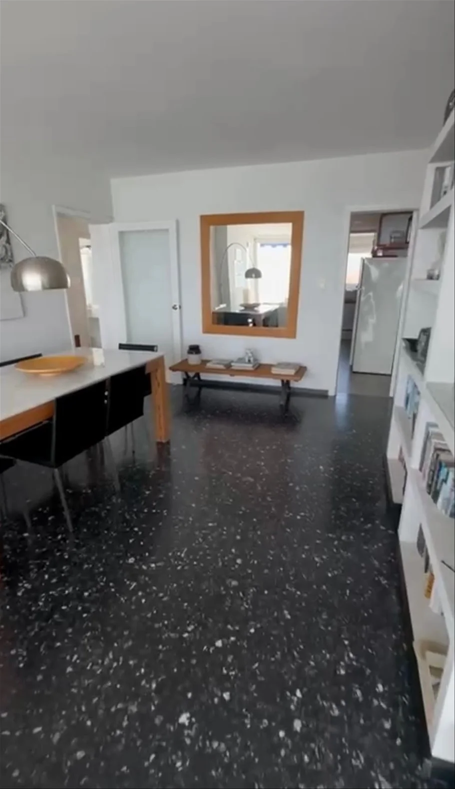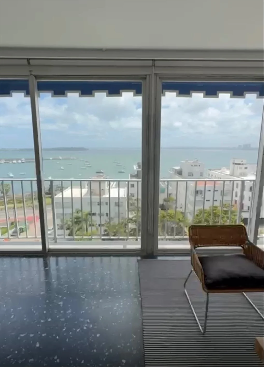 Amplio living comedor con piso alto con vista al mar y amplia terraza,