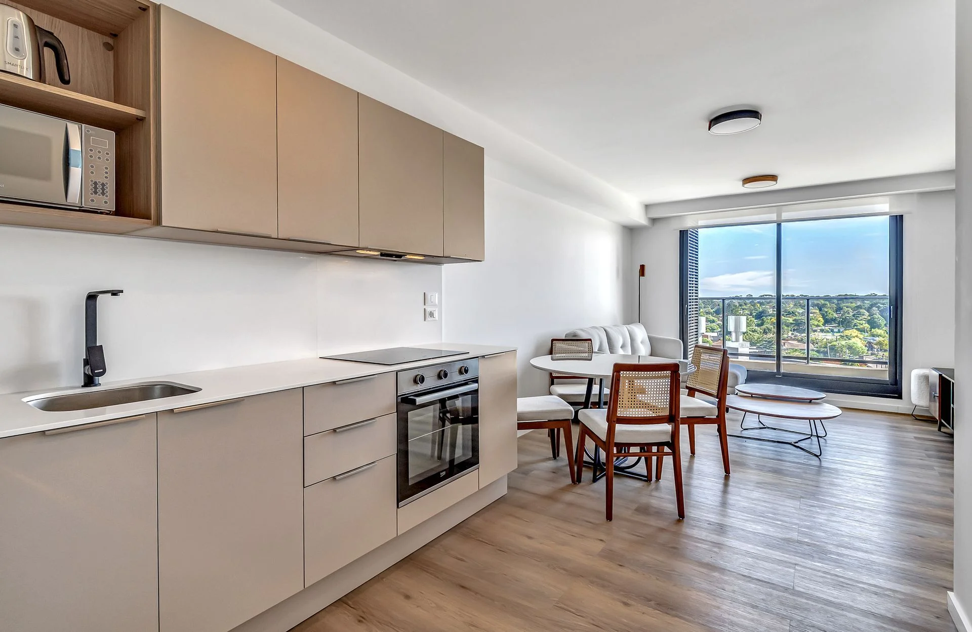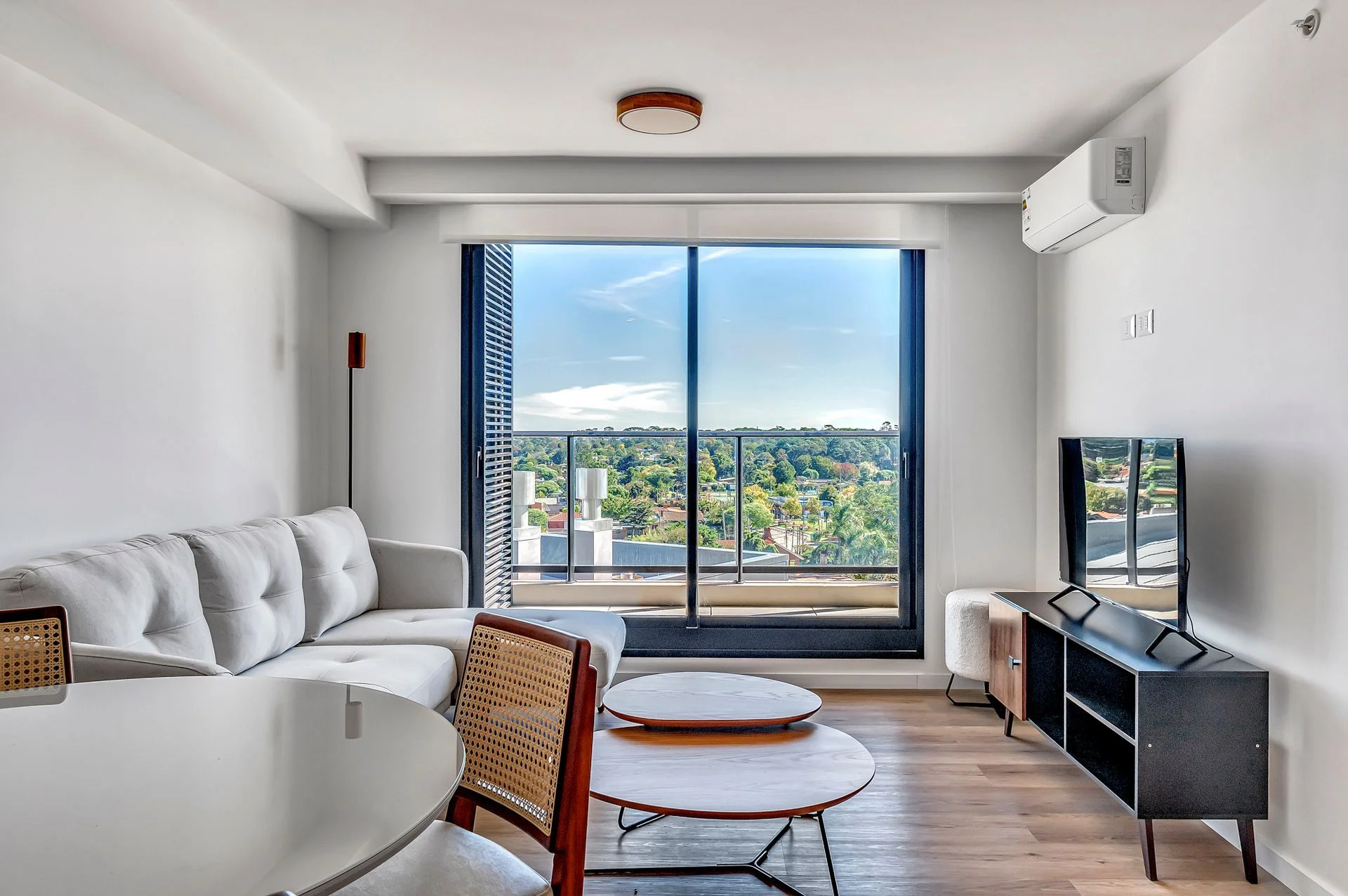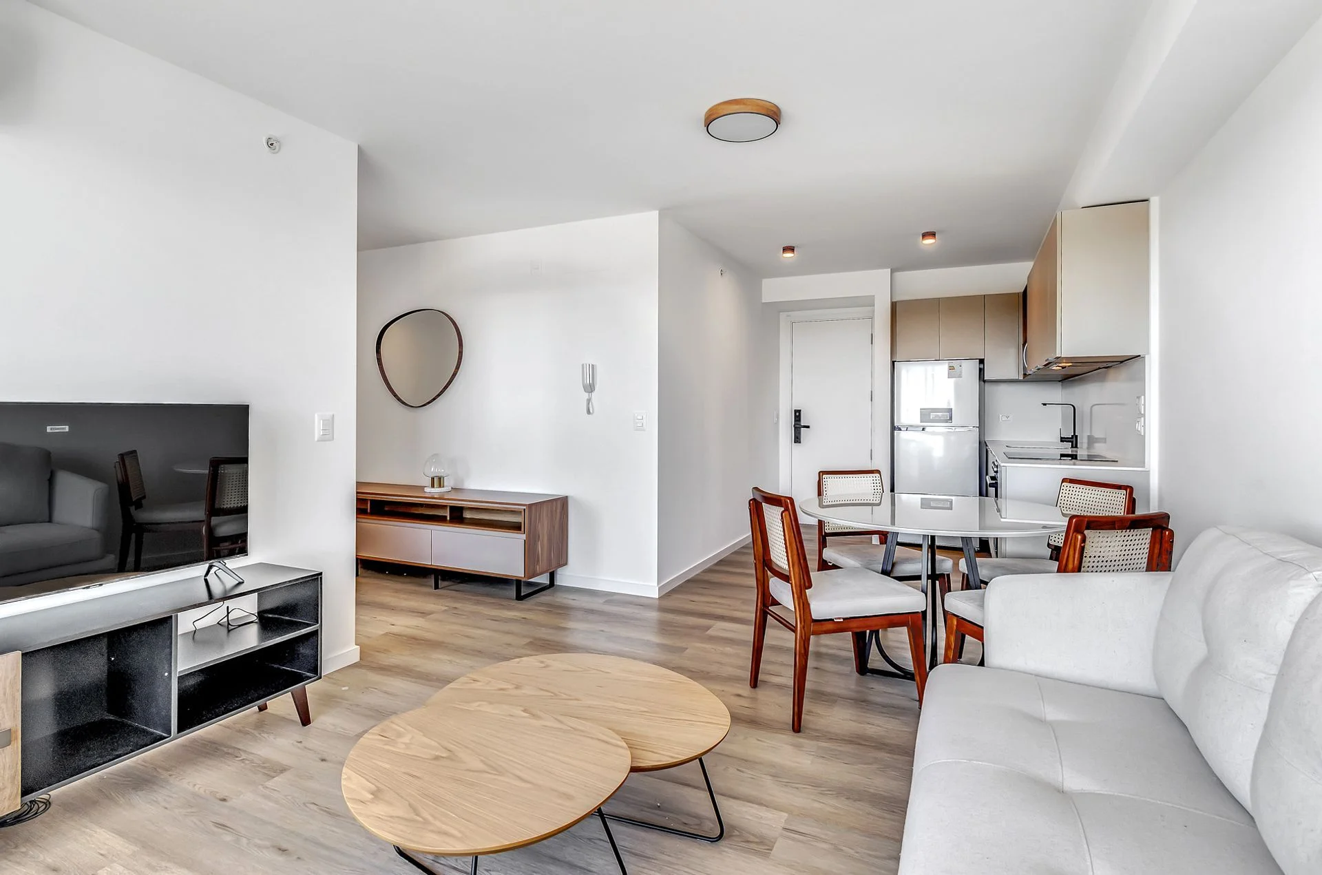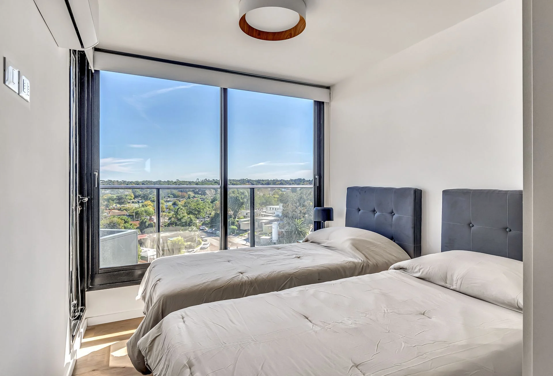 La unidad se distribuye con amplio living comedor con salida al balcón y vista despejada, cocina integrada , 2 dormitorios 1 baño completo. Aire acondicionado en todos los ambientes.