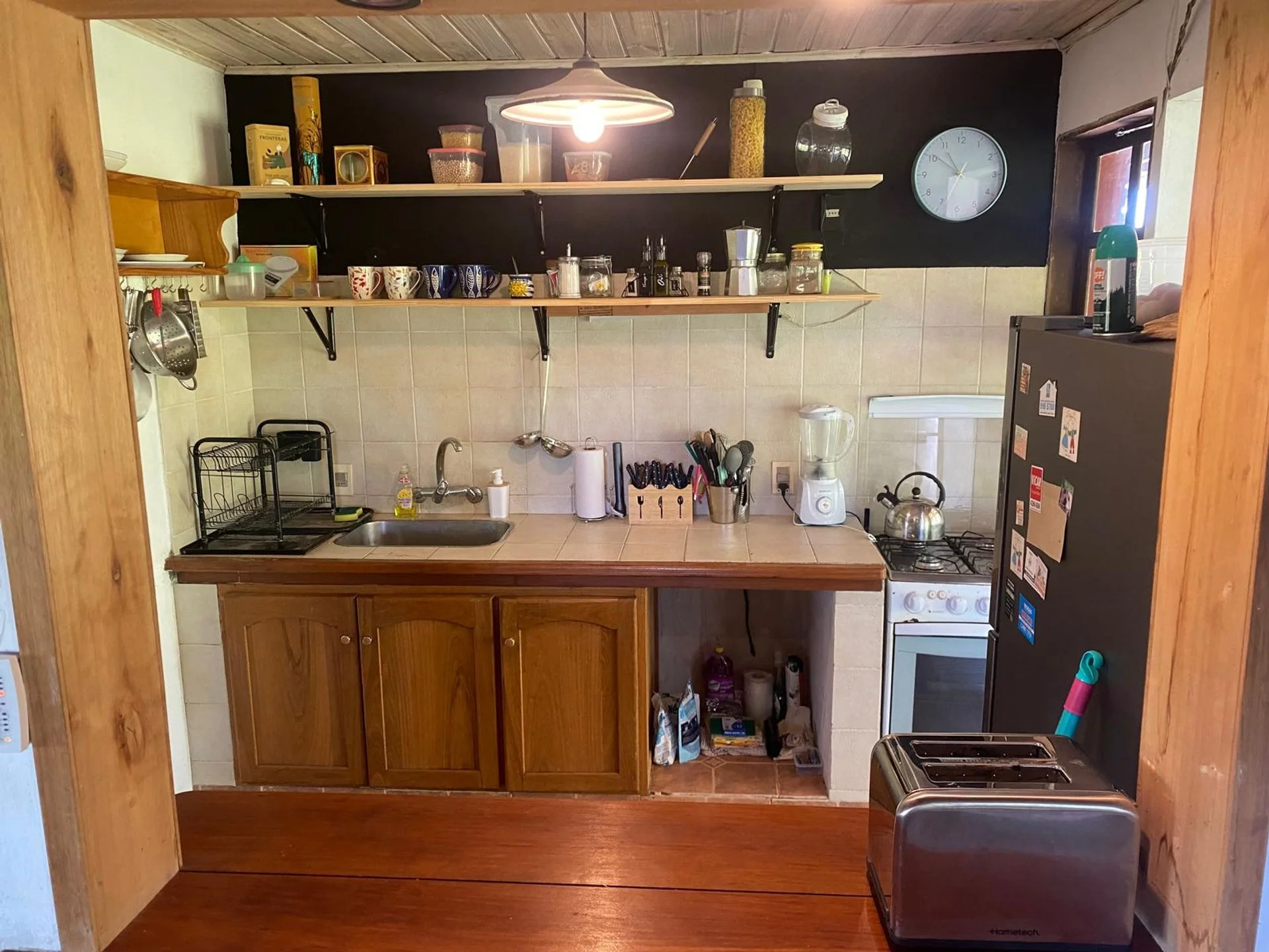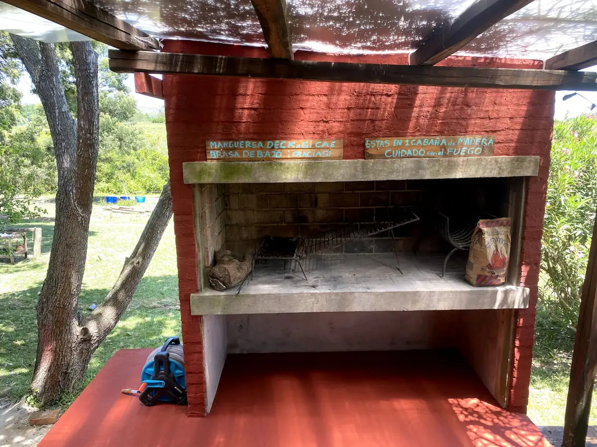 En el exterior, se puede disfrutar de una piscina rodeada de verde, parrillero y fogón ideal para compartir momentos al aire libre.