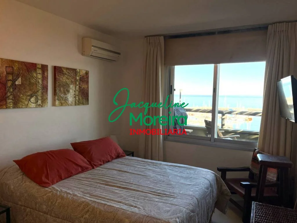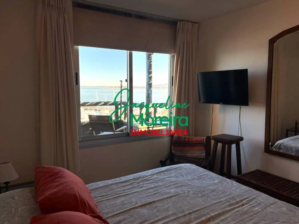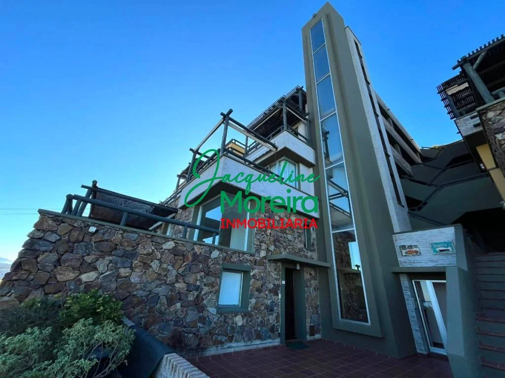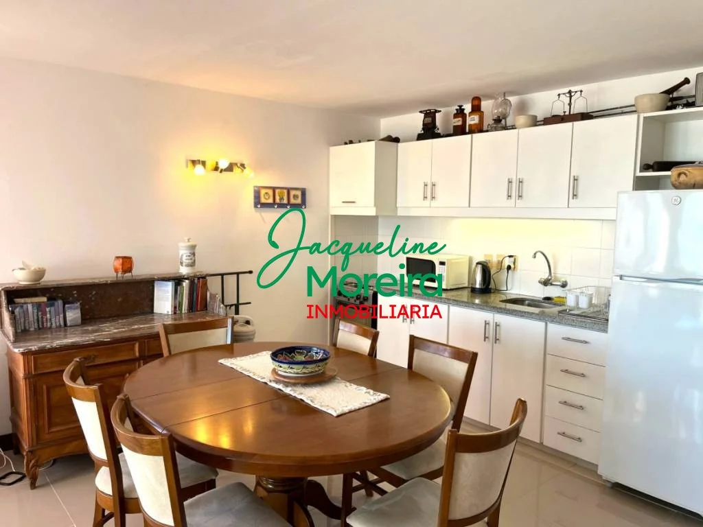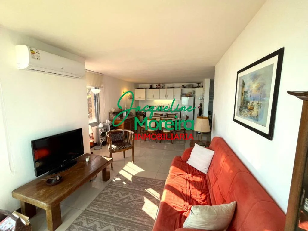 Living-comedor-cocina integrado con amplios ventanales hacia una gran terraza con barbacoa a gas desde donde se puede disfrutar de una espectacular vista del mar, los cerros, el puerto y la bahía de Piriápolis.