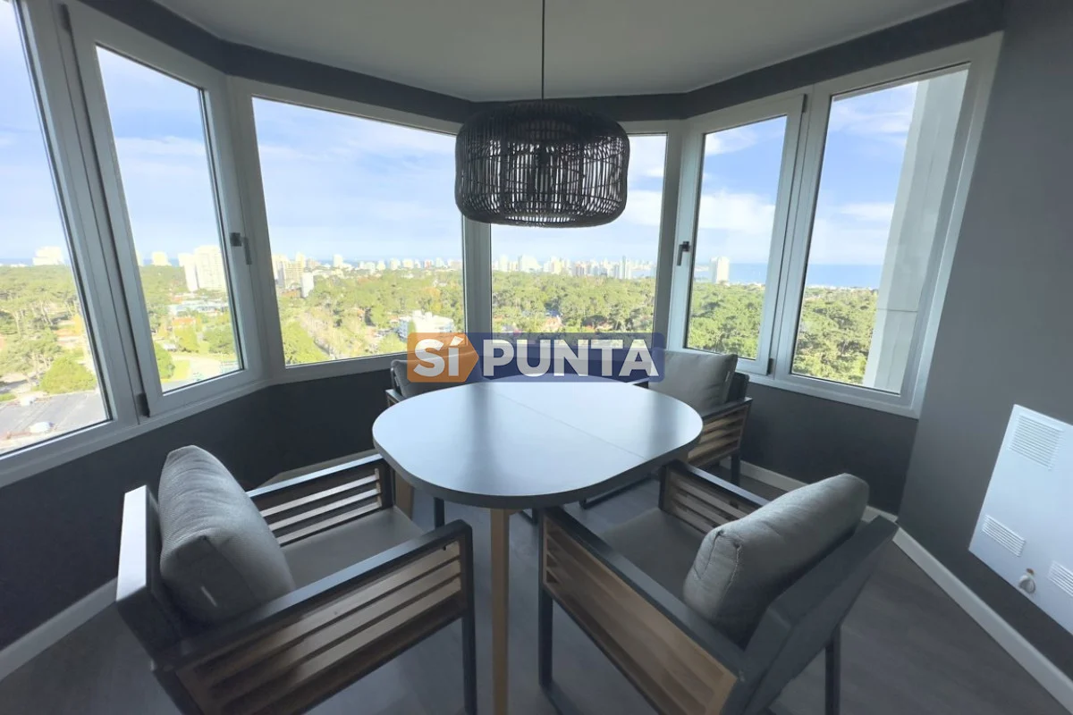 Piso alto, magnifica vista al mar (Playa Mansa, Puerto y Playa Brava). Ideal para los amantes de los amaneceres y atardeceres de Punta! Comodidades: - Amplio living comedor con excelente luz - Terraza cerrada con vista 180 grados de mar - Toilette - Cocina amplia con barra desyunador - Lavadero - 3 amplios dormitorios (una suite) - 2 baños - Garaje - Baulera Cortinas eléctricas Excelente equipamiento Referencia Interna : Tera-876