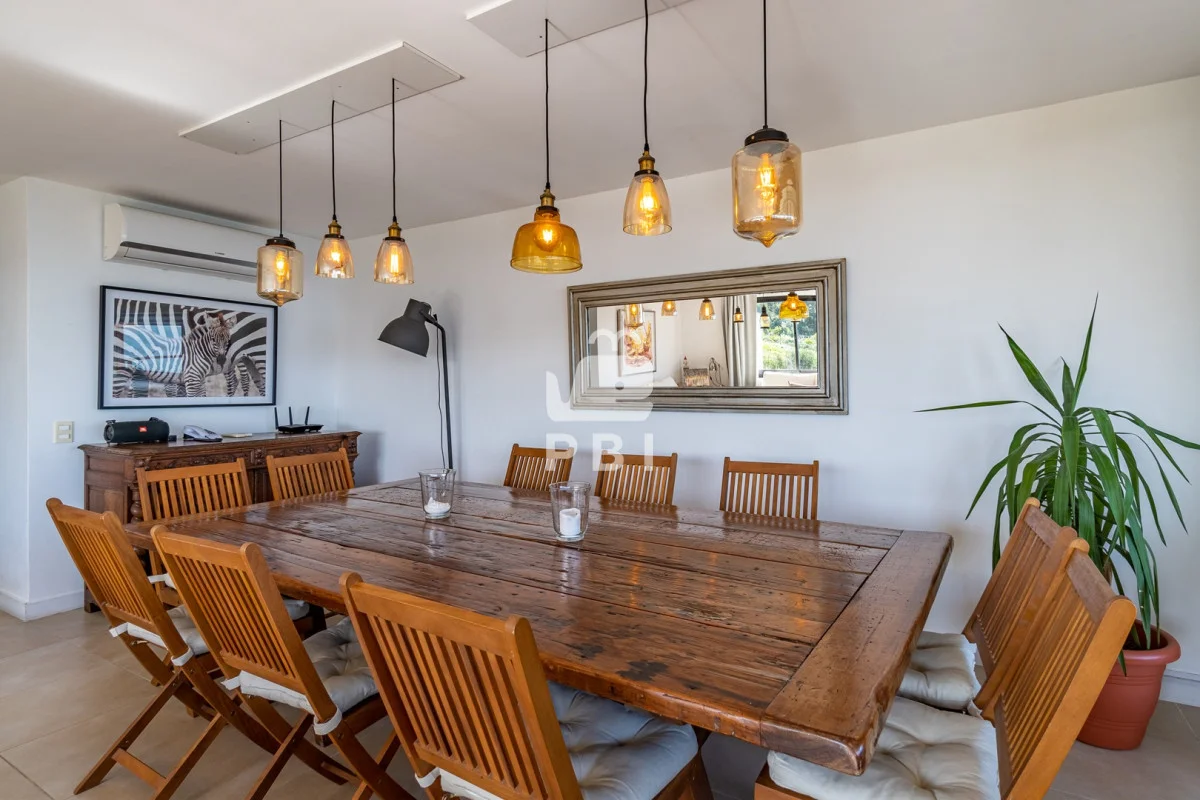 Comedor integrado con capacidad para 10 personas que conecta con la cocina defina totalmente equipada, además con desayunador diario.