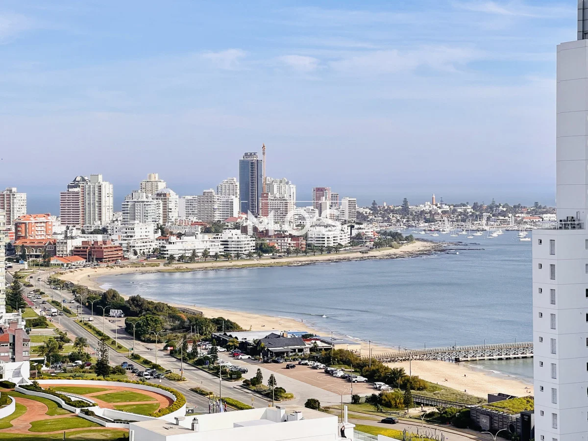 Apartamento piso alto en torre con variedad de servicios en Playa Mansa, Punta del Este.