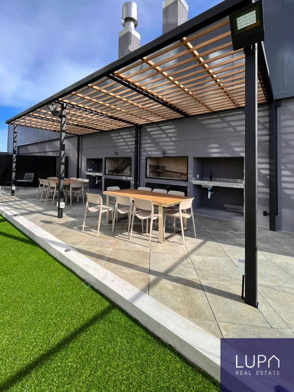 El edificio ofrece una variedad de amenities que transforman la vida cotidiana en una experiencia placentera. Disfrute de la piscina climatizada, tanto interior como exterior, solárium, y espacios para meditación. Para las familias, hay un área infantil equipada con juegos, un playground y un teen área con tecnología de última generación. Además, los residentes pueden disfrutar de un gimnasio, sala de masajes, sauna seco, y dos barbacoas con parrillero y cocina gourmet, perfectas para reuniones y celebraciones. Las terrazas equipadas con livings exteriores y los vestuarios en la zona de piscina complementan este estilo de vida exclusivo.