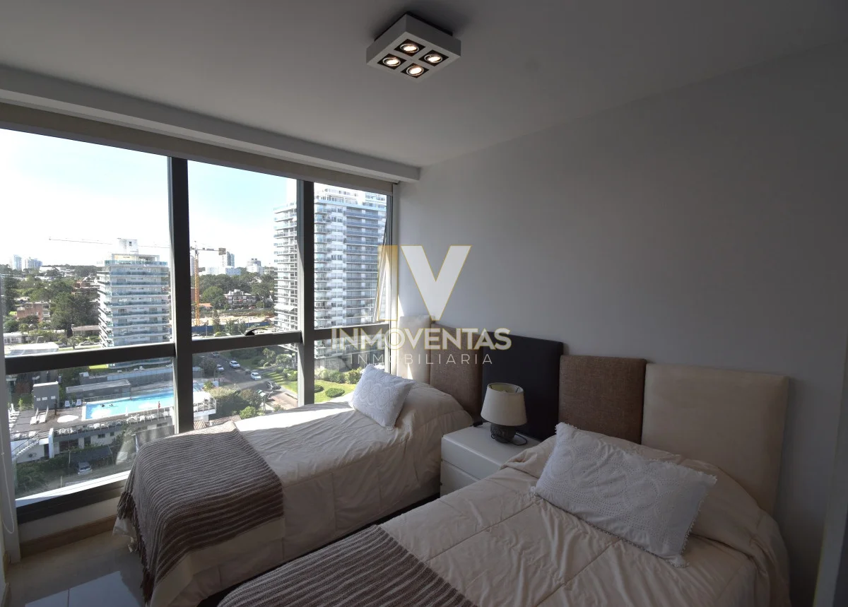 Cómodo apartamento en excelente estado, living-comedor, terraza con vista a La Playa Mansa, 2 dormitorios, 2 baños, cocina, lavadero y garage. Servicio de mucamas y servicio de playa. Cuenta con piscina abierta en el piso 16, piscina cerrada, gym, sauna, playroom, barbacoas de uso común. Consulte por venta. Referencia Interna : Tera-4115