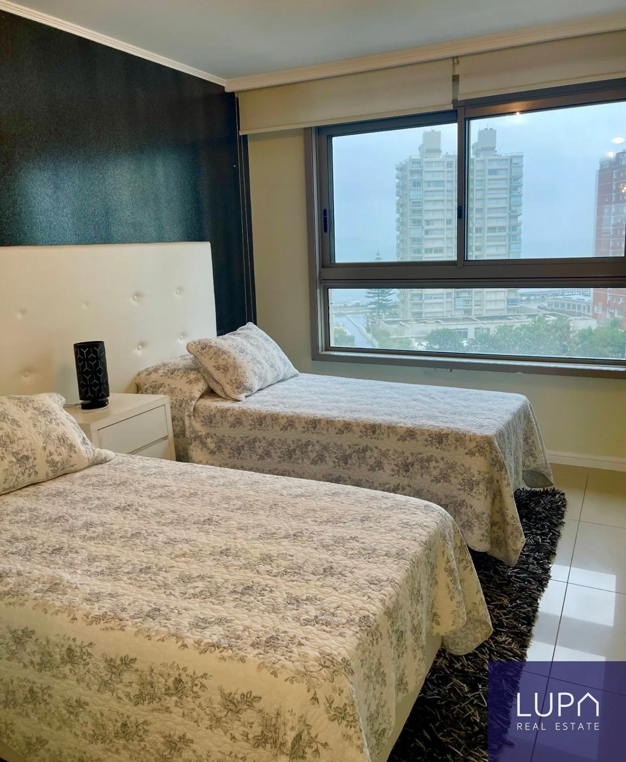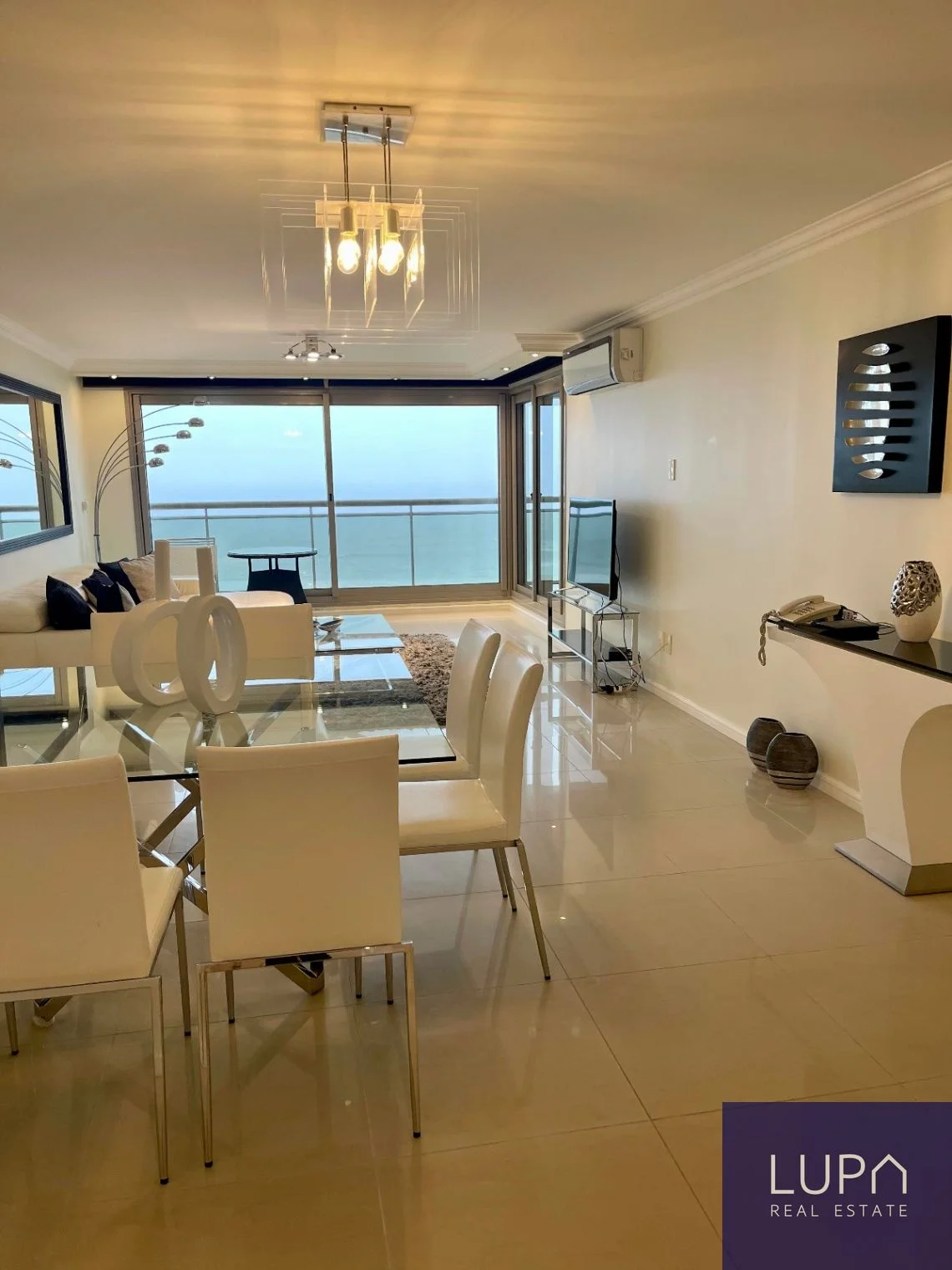 Con 3 dormitorios en suite y un toilette adicional (posibilidad de 2 dormitorios y servicio completo), este espacio se distingue por su amplio living comedor que se extiende hacia un balcón, brindando vistas impresionantes que permiten disfrutar de los mágicos amaneceres y atardeceres que caracterizan la zona. La unidad está equipada con calefacción por losa radiante y aire acondicionado, garantizando confort durante todo el año.