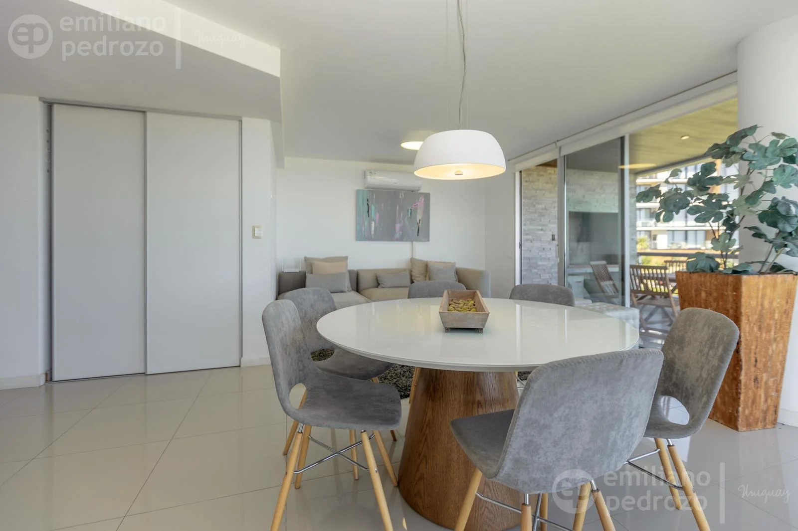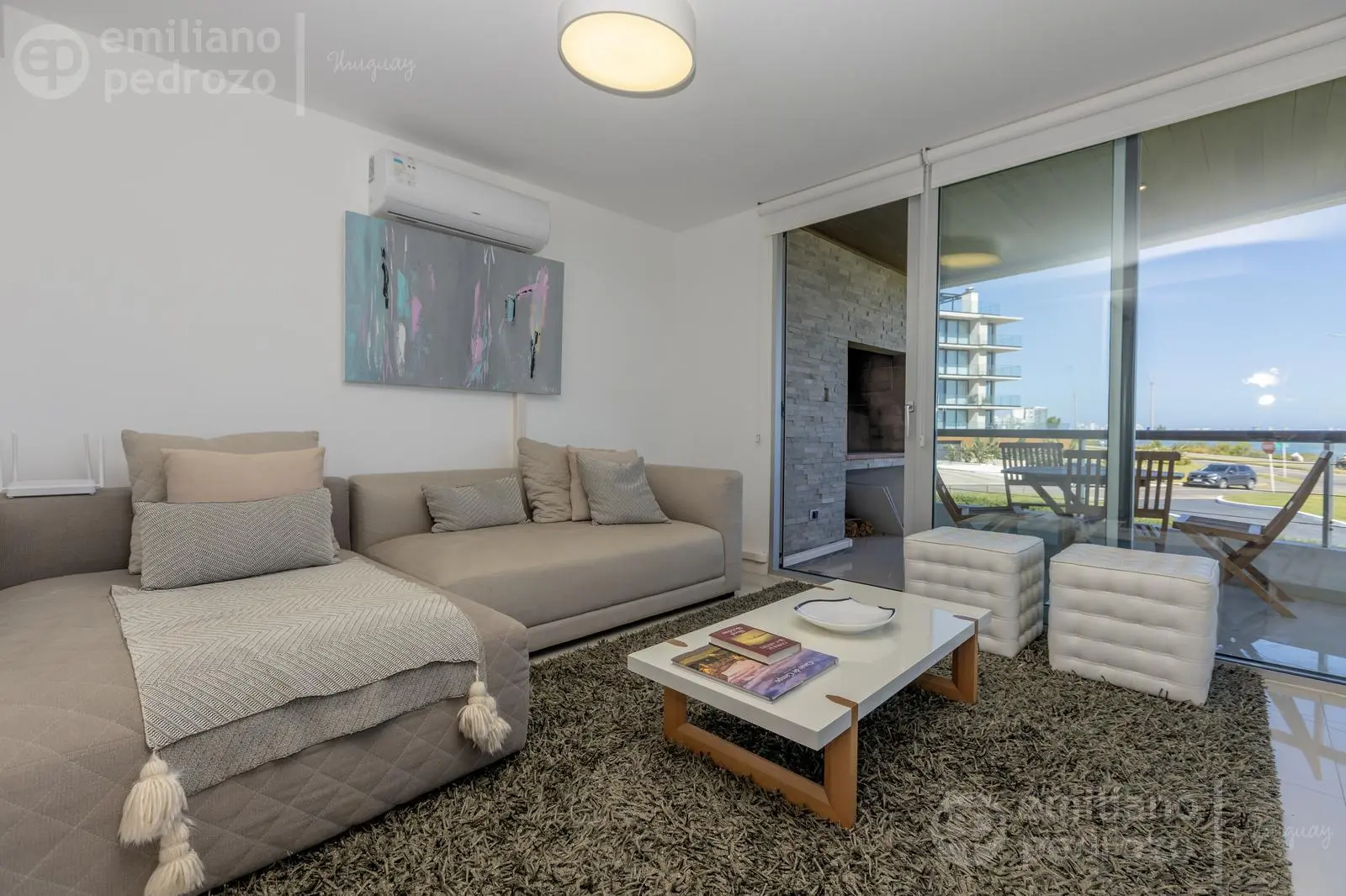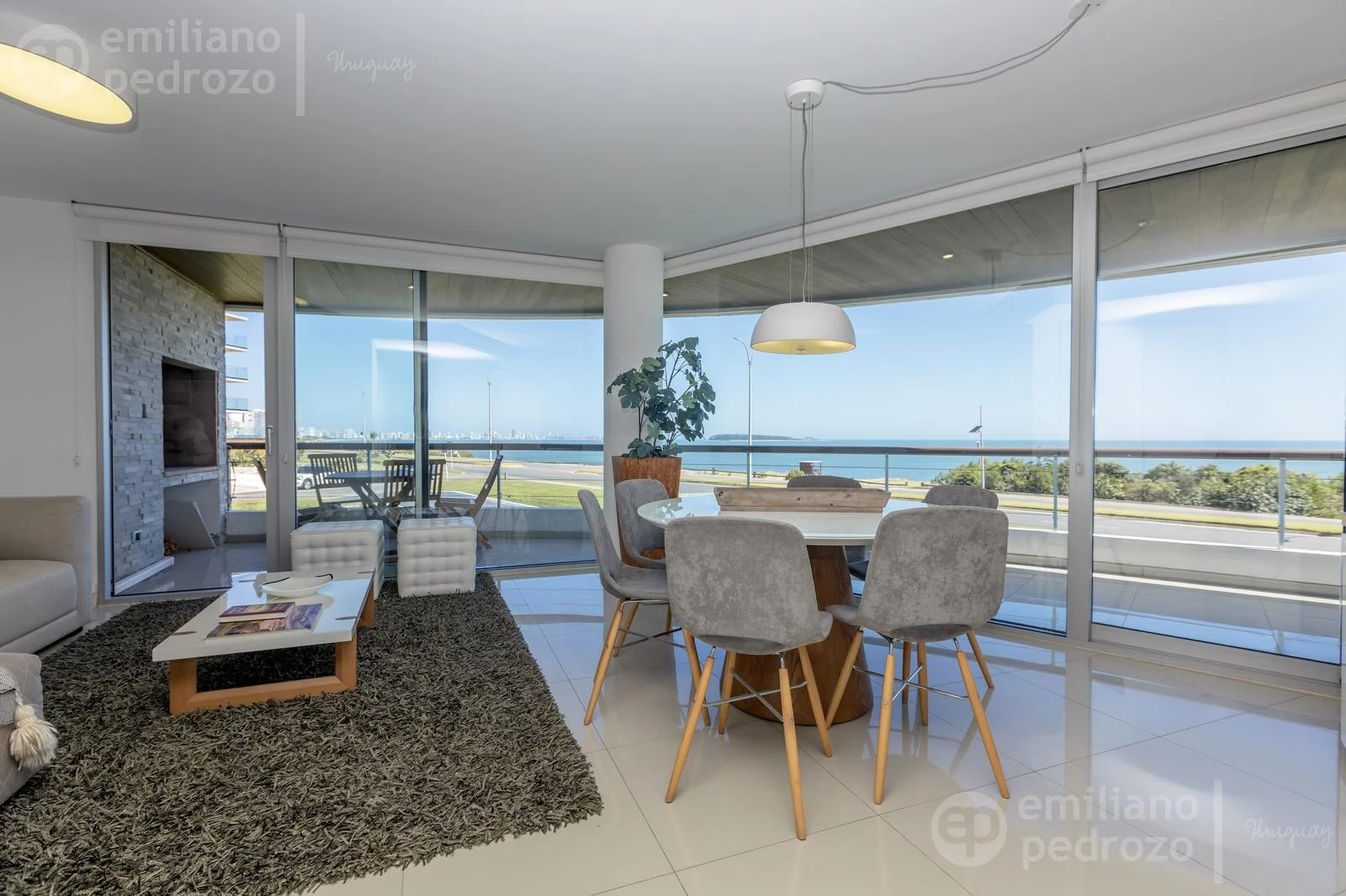 Impecable apartamento en edificio ubicado en primera línea de Playa Mansa - Pinares!Posee 3 dormitorios, uno de ellos en suite, y dependencia de servicio con baño.Amplio living comedor con vistas al mar!! y salida a un balcon aterrazado con parrilero.Cocina separada con espacio para comedor diario y zona de servicio.Aberturas DVH y losa radiante en todo el apartamento.Edificio con microcine, gimnasio, piscina interior, piscina exterior y zona parrilleros.codigo referencia : EAP7540936
