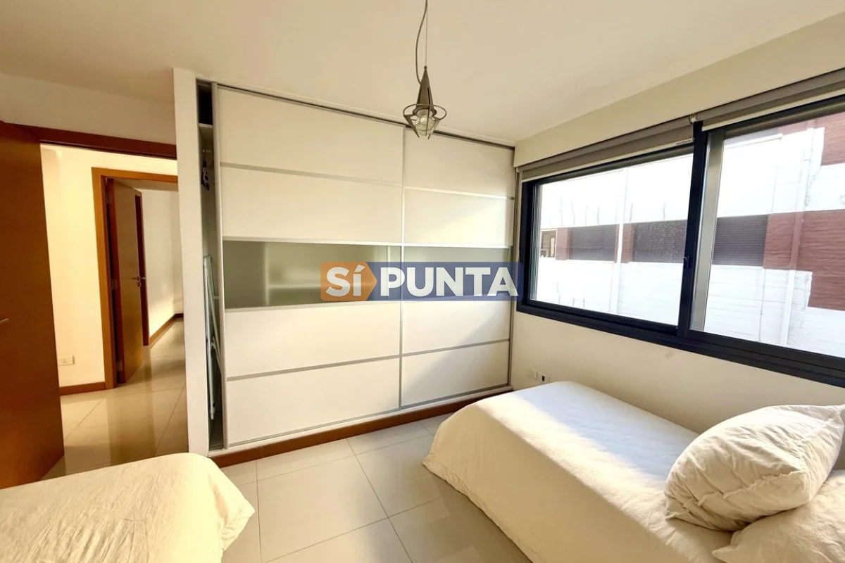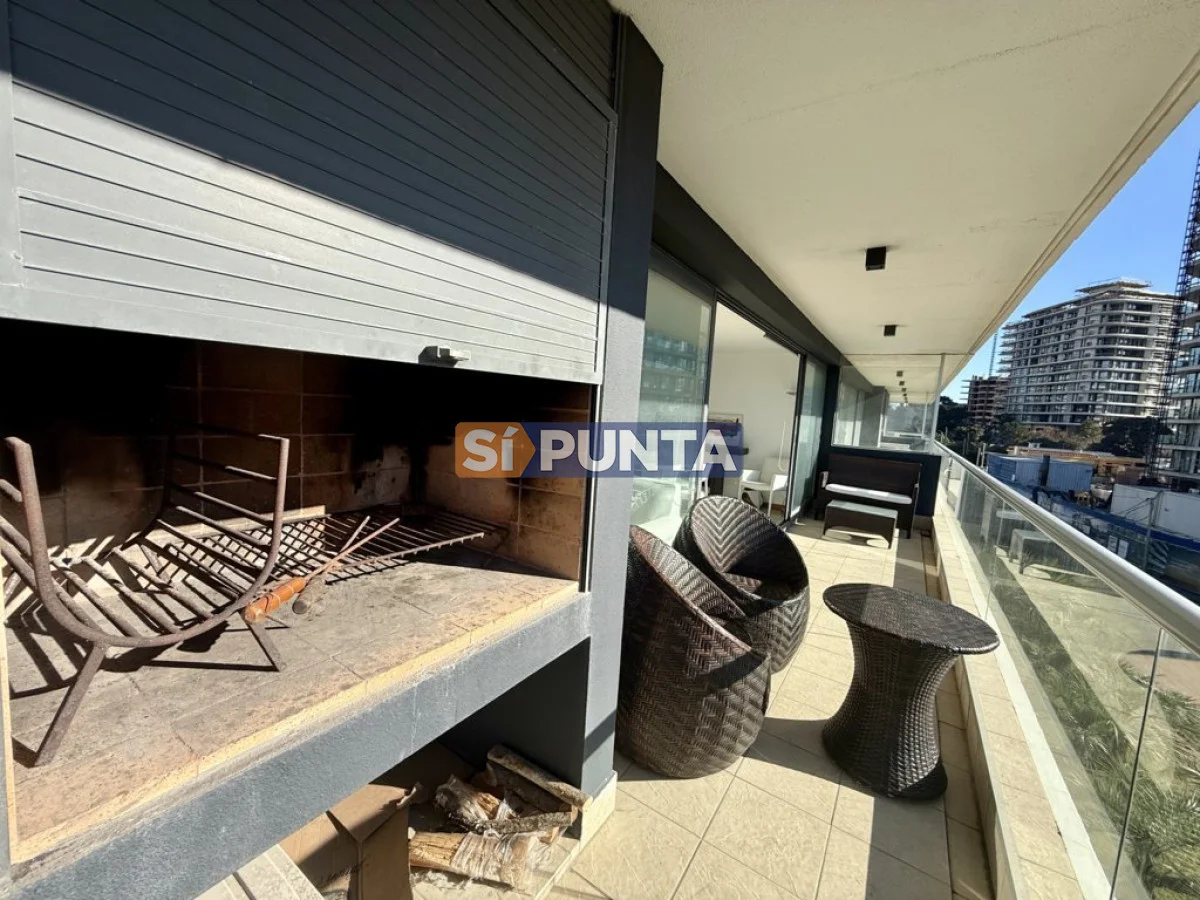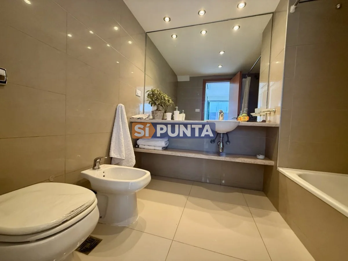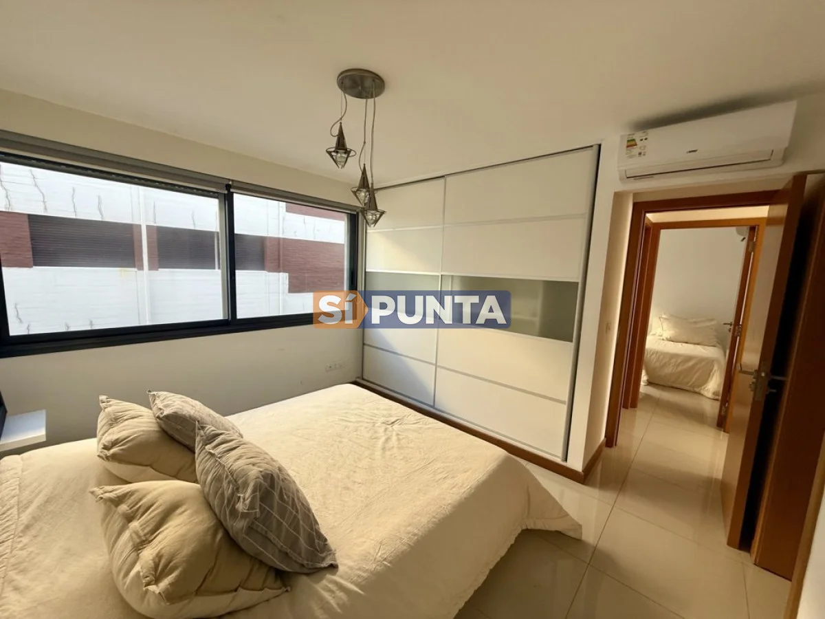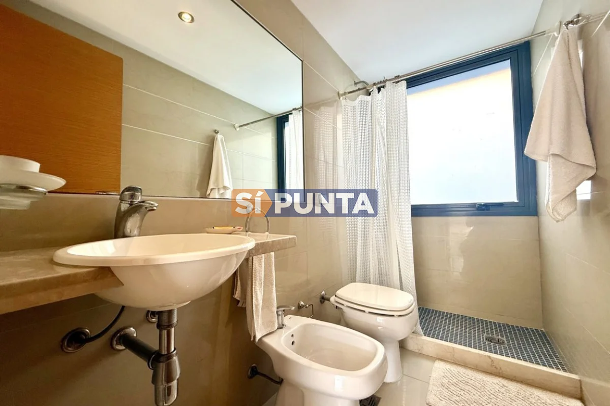 Edificio en primera línea de Playa Brava. Cuenta con vista al mar. Comodidades: - Living - Comedor - Cocina integrada - Terraza con parrillero propio - 2 Dormitorios (una suite) - 2 Baños - Aire acondicionado en todos sus ambientes - Losa Radiante - Garaje Amenities: Recepción, vigilancia, serv. de mucama, sauna, spa, solarium, parrillero, gimnasio y piscina climatizada Referencia Interna : Tera-263