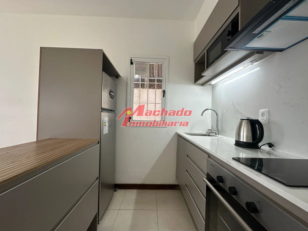 La cocina tipo kitchinette se integra perfectamente con el living comedor, creando un ambiente abierto y acogedor. Y si eso no fuera suficiente, la propiedad también cuenta con una piscina para esos días en los que prefieres un chapuzón más privado.