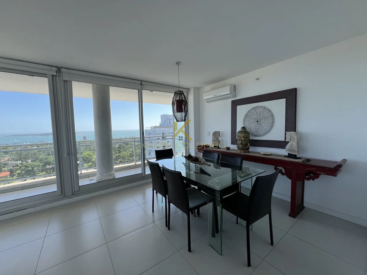 2 dormitorios, 2 baños, amplio living comedor con salida a una espectacular terraza con vista panorámica al mar, cocina definida, terraza lavadero, unidad de garage en subsuelo.