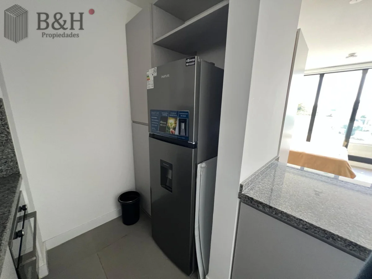 En venta o alquiler anual, unidad mono ambiente. Muy buen tamaño, cocina integrada, cerramiento de doble vidriado hermético, balcón al frente, luminoso y soleado, garaje en subsuelo. Edificio con servicios: microcine, gimnasio, barbacoa, piscina interior climatizada, jacuzzi y una piscina exterior en la última planta del edificio muy buena zona para vivir todo el año.