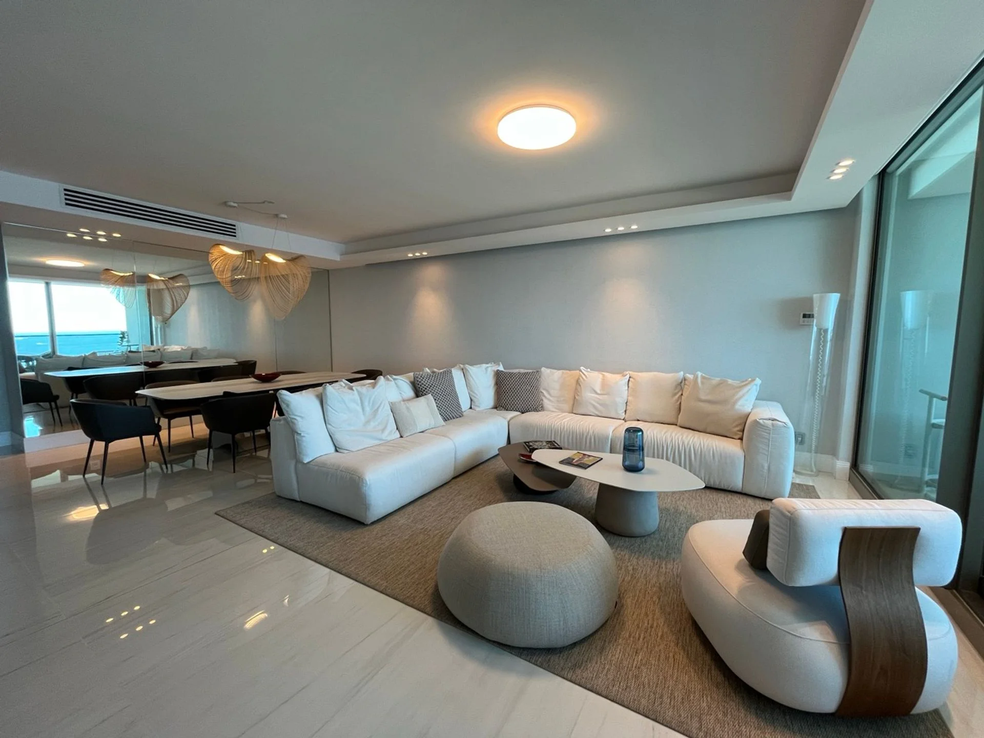 Este moderno departamento se encuentra ubicado sobre la Rambla Doctor Claudio Williman, en la Pda 17, Edificio Fendi Chateau. Situado en el piso 10 de un edificio de 27 pisos, ofrece una vista panorámica de la península de Punta del Este y de Punta Ballena.