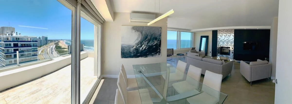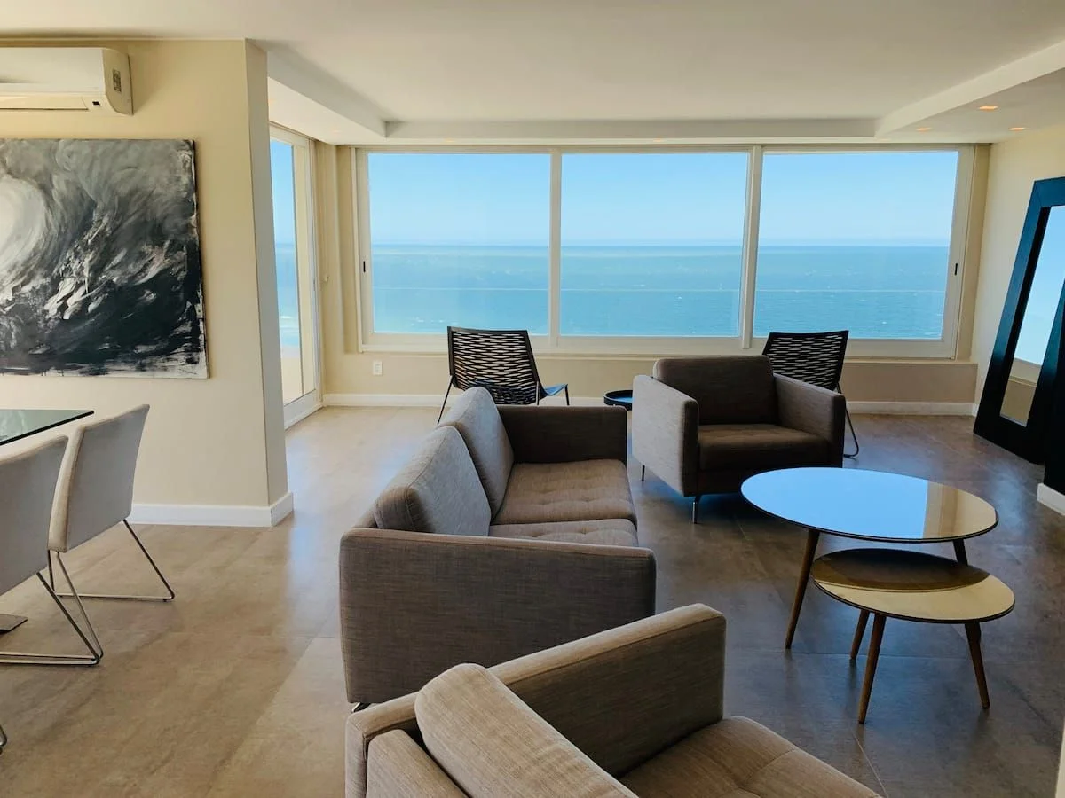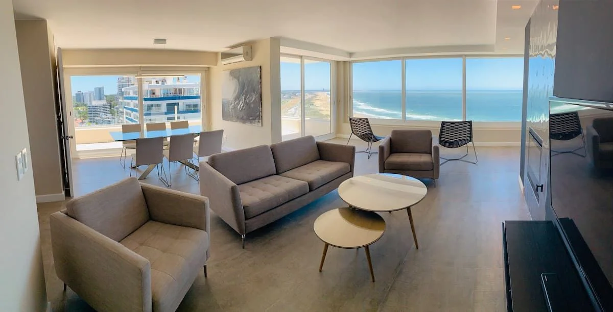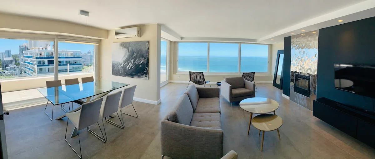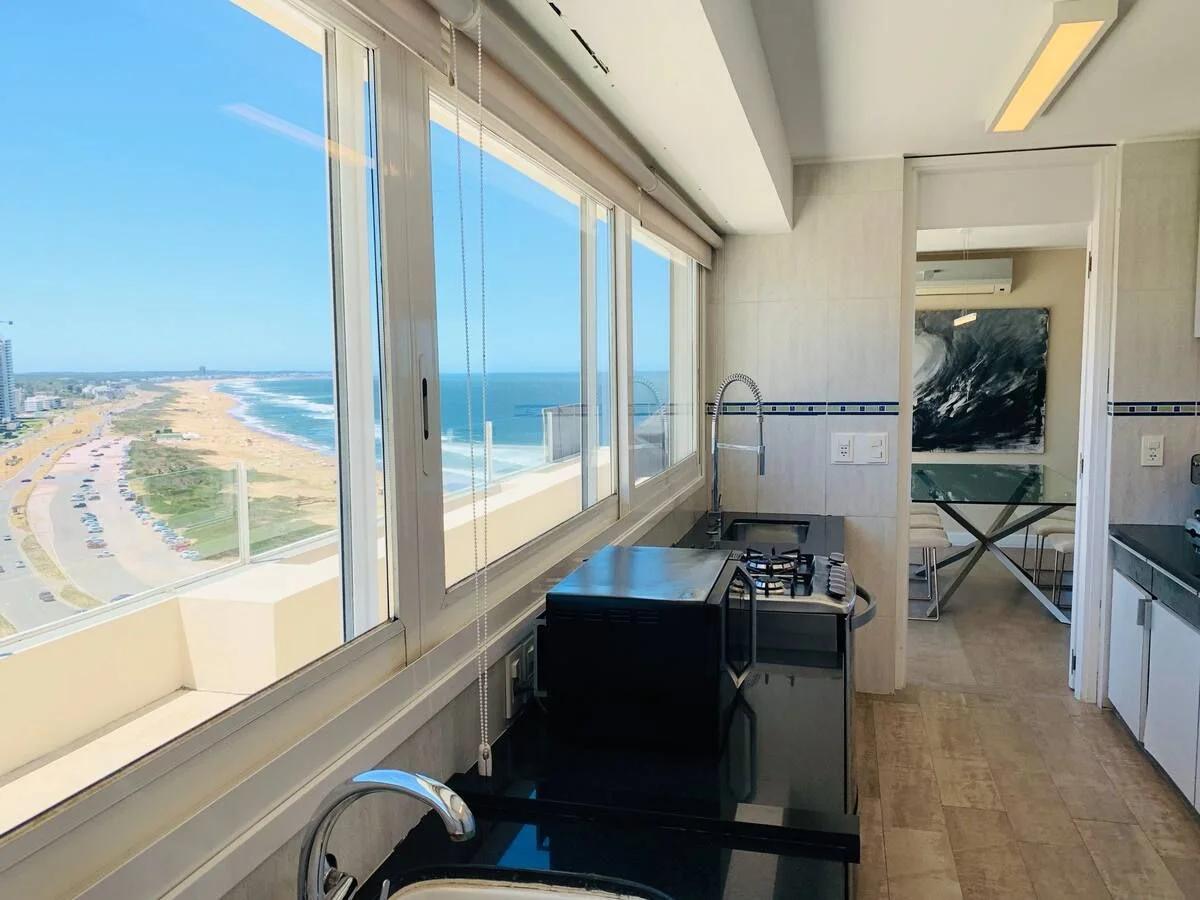 Espectacular apartamento frente al mar. 3 dormitorios, amplio living comedor, cocina, 3 baños. En exterior amplia terraza con gran vista al mar. Muy bien equipado. Excelente ubicación en un entorno tranquilo y natural, cercano a todos los servicios. Cuenta con servicio de playa , cochera, piscina climatizada, servicio de mucama.