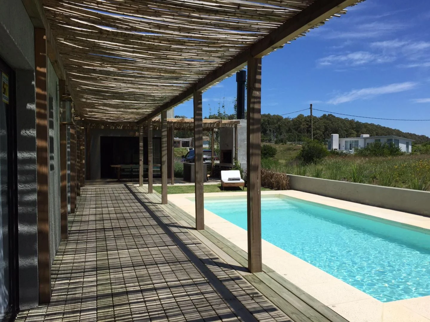 Hermosa casa ubicada en el barrio San Vicente a mitad de camino entre José Ignacio pueblo, Manantiales y La Barra, ideal para disfrutar de la tranquilidad característica del campo pero a minutos de de Manantiales y de las diferente propuestas gastronómicas que ofrece Jose Ignacio, 4 dormitorios, 2 en suite, cocina, living-comedor, deck de madera, pileta climatizada, parrilla, cochera.
