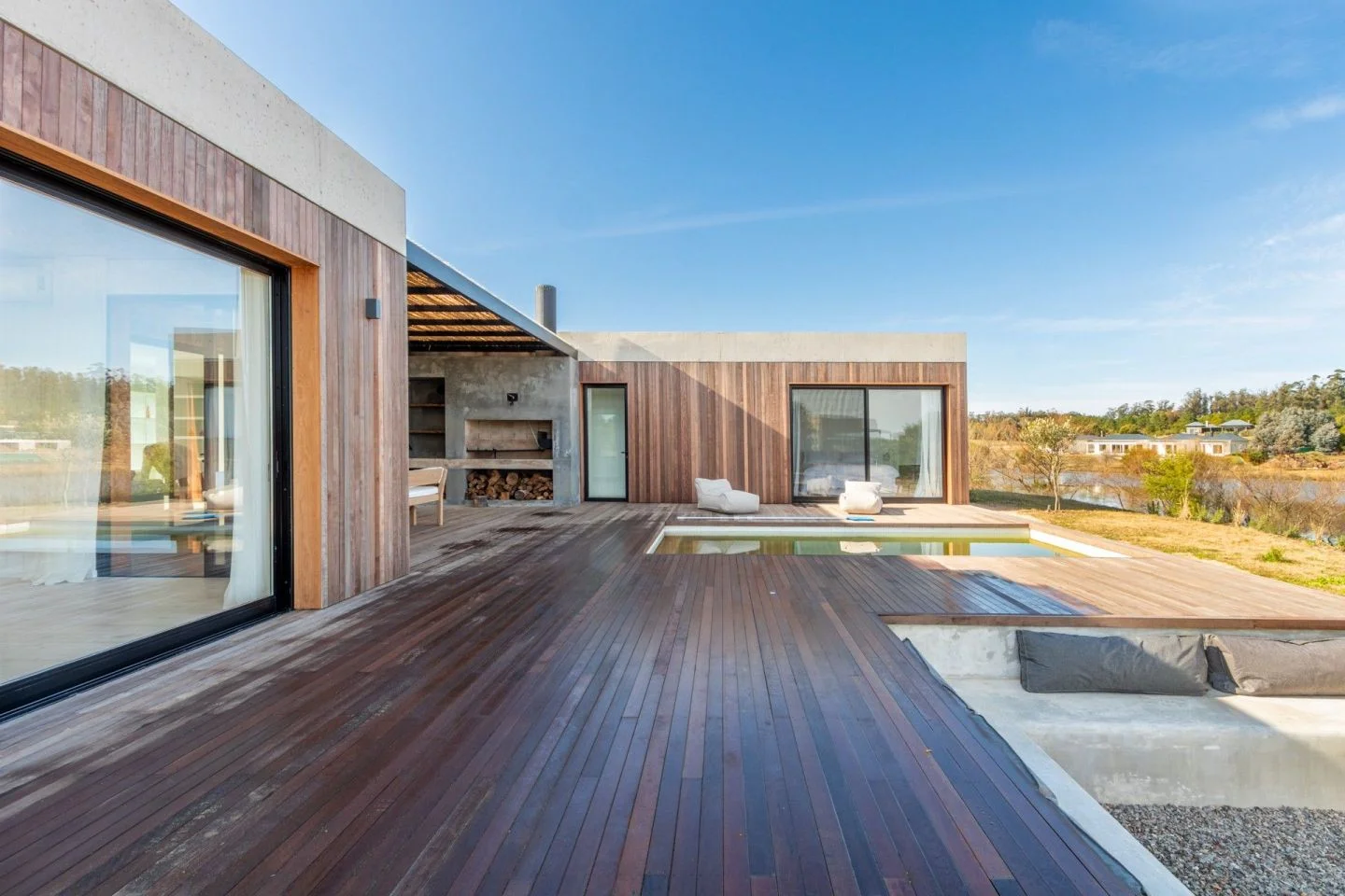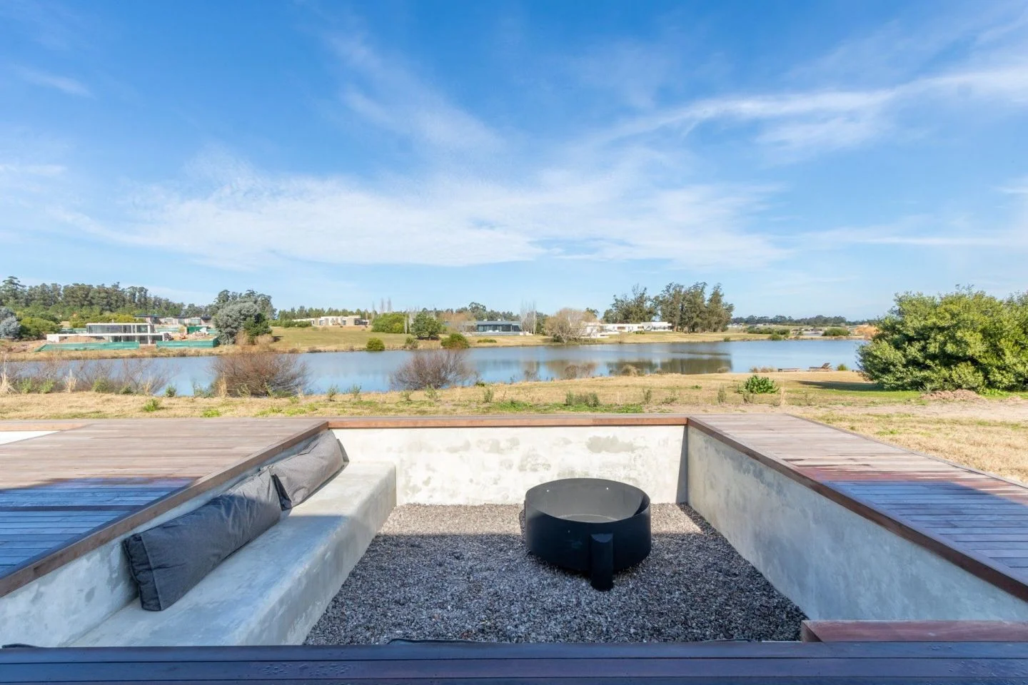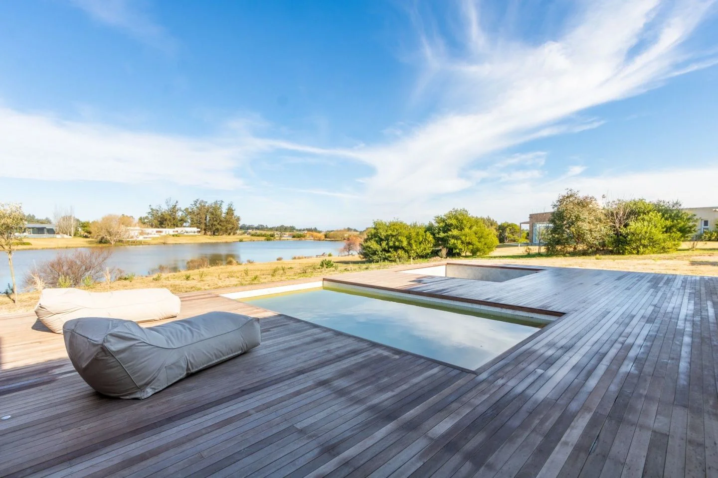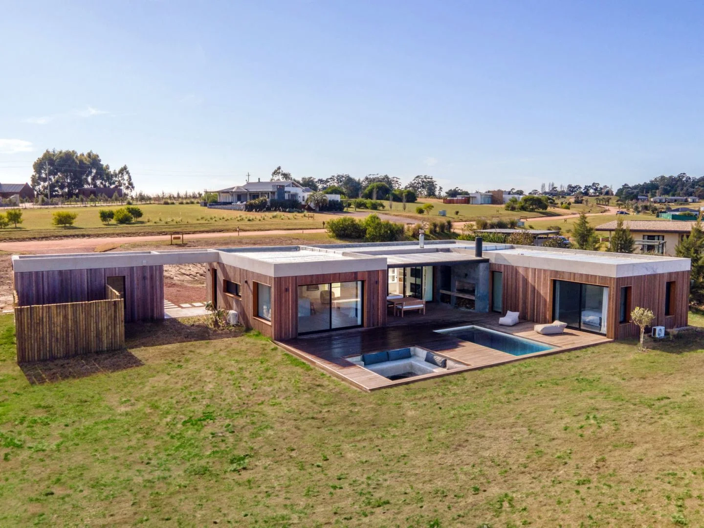 Ubicada en este consagrado y vivaz barrio privado, en Ruta 104 a cinco kilómetros de la playa, sobre un campo de 159 hectáreas, encontramos esta preciosa casa de excelente calidad constructiva y terminaciones.