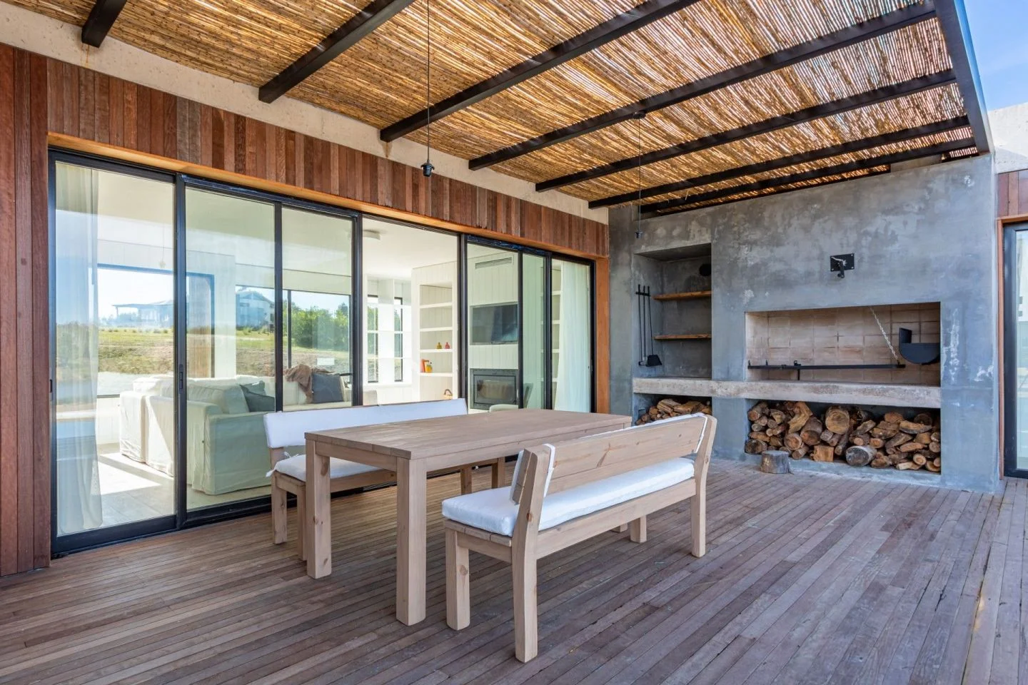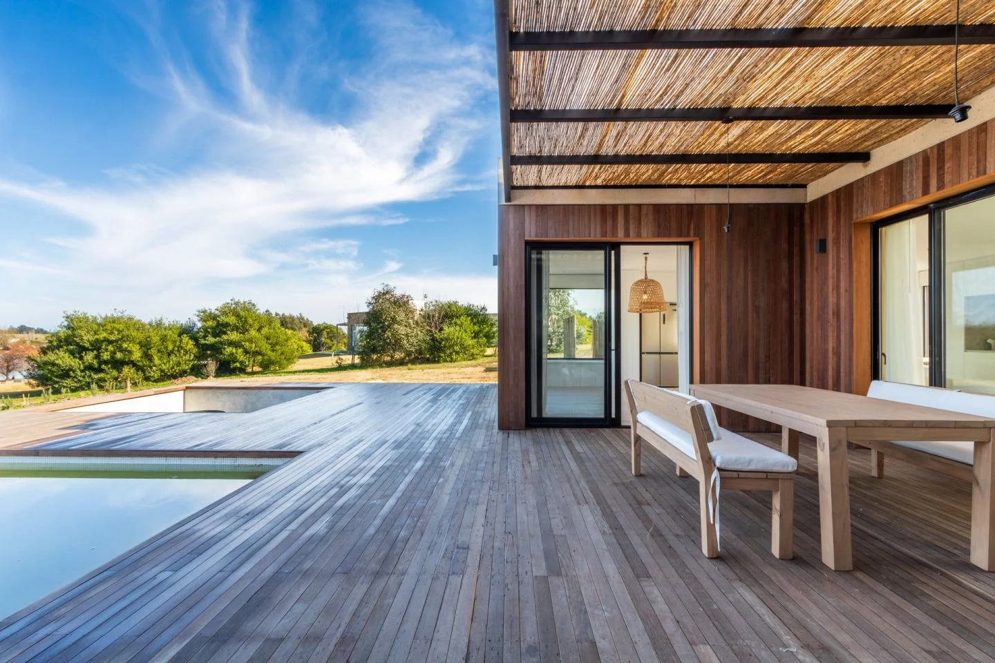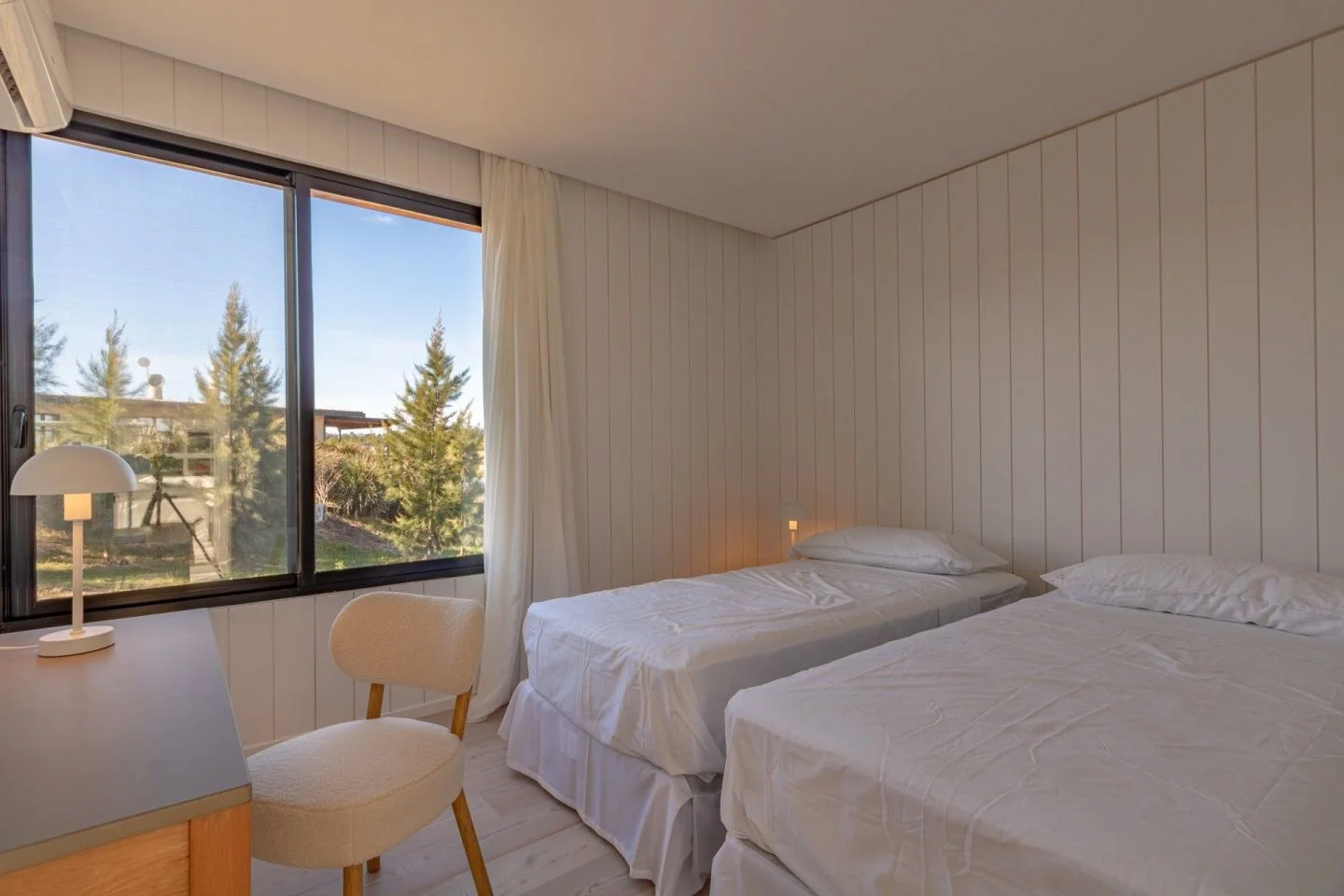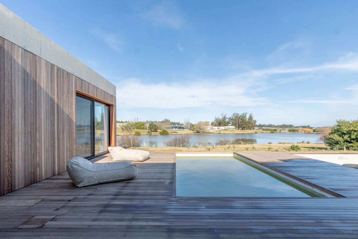Ubicada en este consagrado y vivaz barrio privado, en Ruta 104 a cinco kilómetros de la playa, sobre un campo de 159 hectáreas, encontramos esta preciosa casa de excelente calidad constructiva y terminaciones.