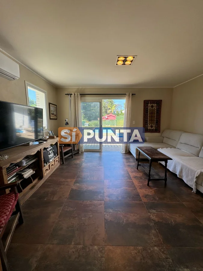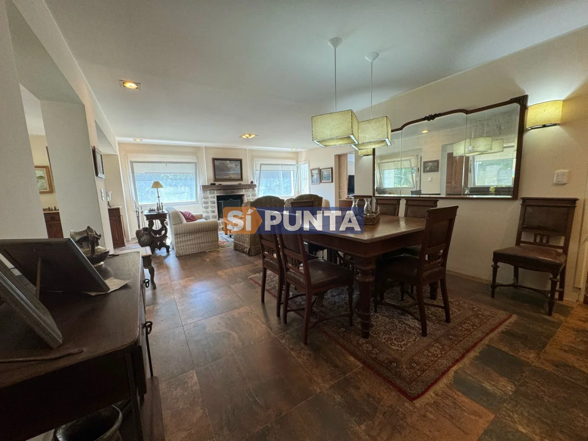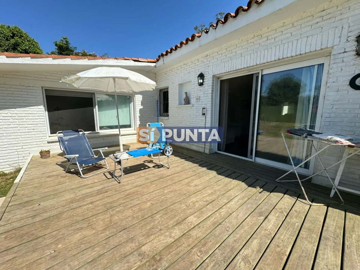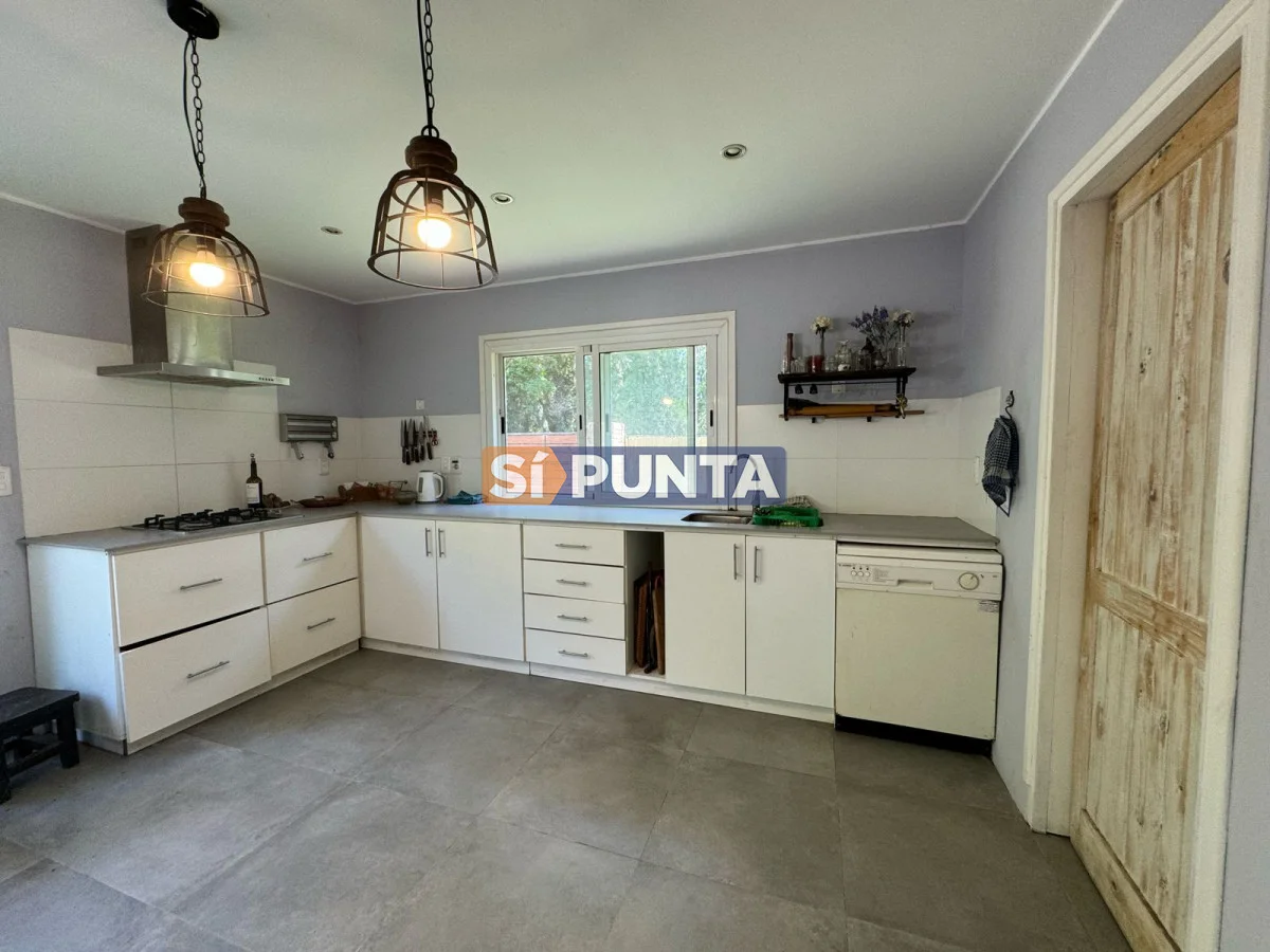 Casa ubicada a 400 metros del mar en Rincón del Indio. Desarrollada en una sola planta. Comodidades: - Living - comedor amplio con estufa a leña - Amplia cocina con lavadero - 4 dormitorios (una suite) - Playroom - Parrillero techado con baño - Piscina Referencia Interna : Tera-13408