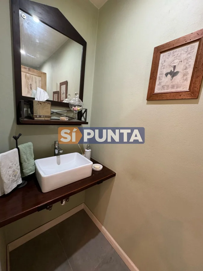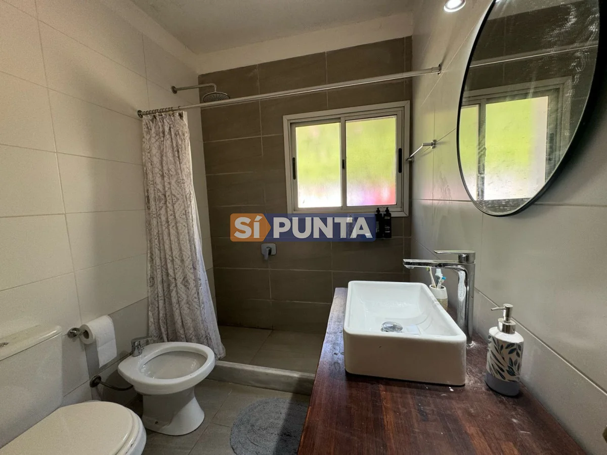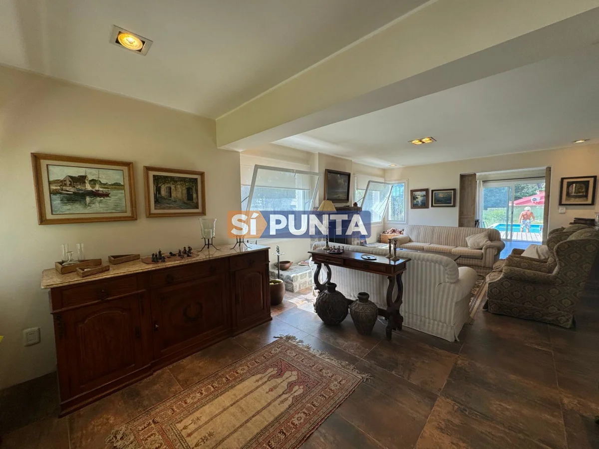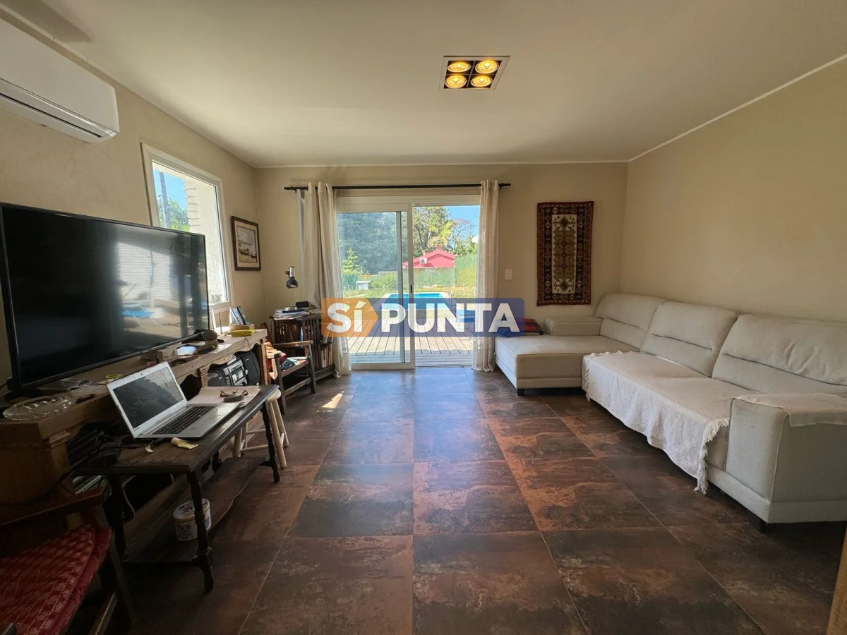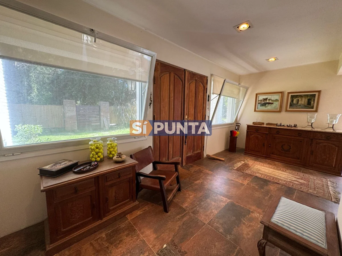 Casa ubicada a 400 metros del mar en Rincón del Indio. Desarrollada en una sola planta. Comodidades: - Living - comedor amplio con estufa a leña - Amplia cocina con lavadero - 4 dormitorios (una suite) - Playroom - Parrillero techado con baño - Piscina Referencia Interna : Tera-13408
