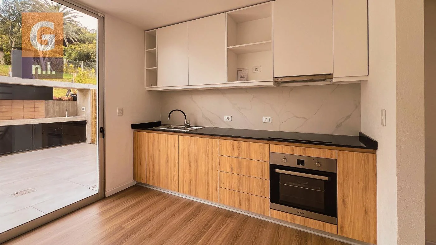 La unidad se desarrolla en 3 niveles: Nivel planta baja y cochera. Acceso a dormitorio/escritorio con placar empotrado, ascendiendo a: Planta Alta por escalera se encuentra Living comedor con terraza balcón al frente con una vista única de la bahía de Piriápolis, cocina semi integrada con mueble aéreo y bajo mesada. Al fondo salida a patio, parrillero y jardín. Baño se servicio. Y por último el tercer nivel: con dos dormitorios con placar y baño completo, uno de ellos con salida a terraza.