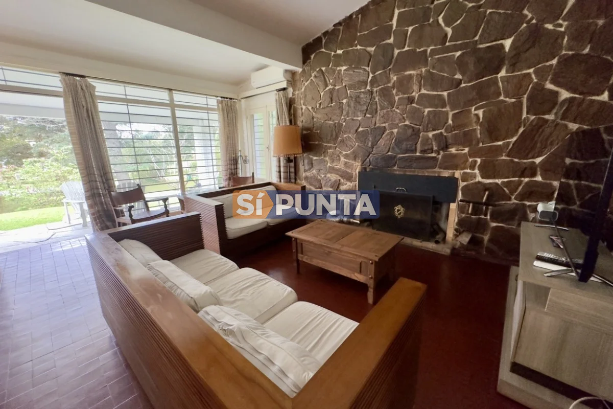 Casa ubicada en Lugano - Punta del Este. Muy luminosa y con amplios espacios, cuenta con gran parque de 1500 m2. Comodidades: - Living - Estufa a leña - Comedor - Cocina - 4 Dormitorios - 3 Baños - Dependencia de servicio - Gran jardín - Piscina exterior Referencia Interna : Tera-1259
