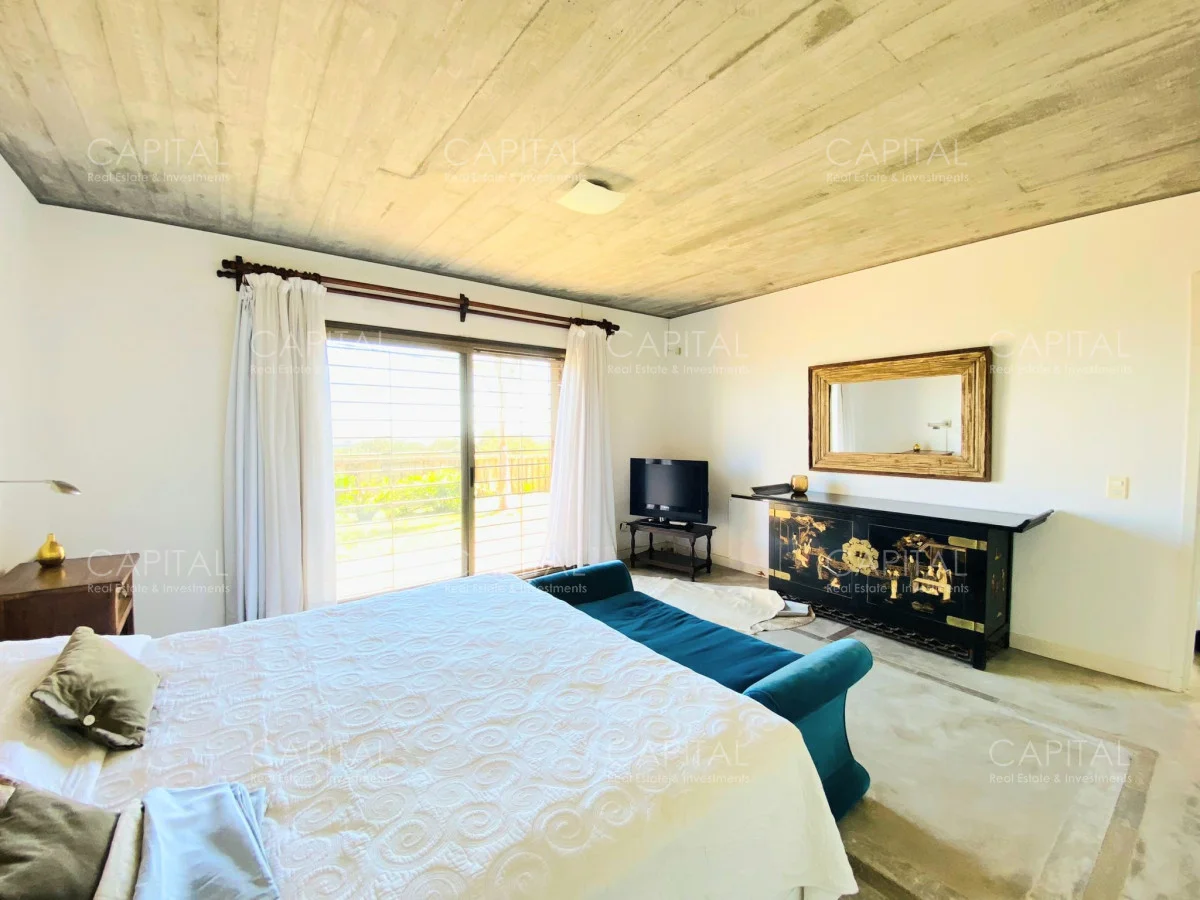 Planta baja dormitorio principal en suite con salida directa al jardín y la piscina + dos dormitorios en suite, todos cuentan con vista al mar.