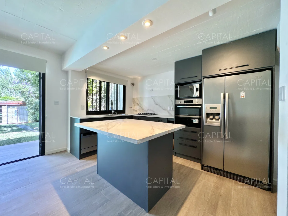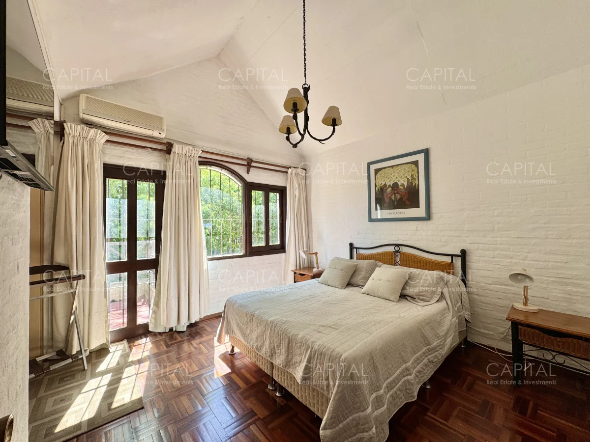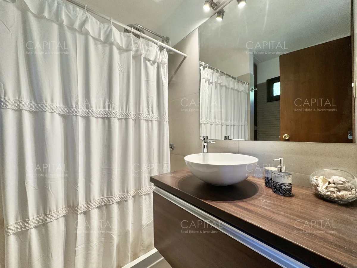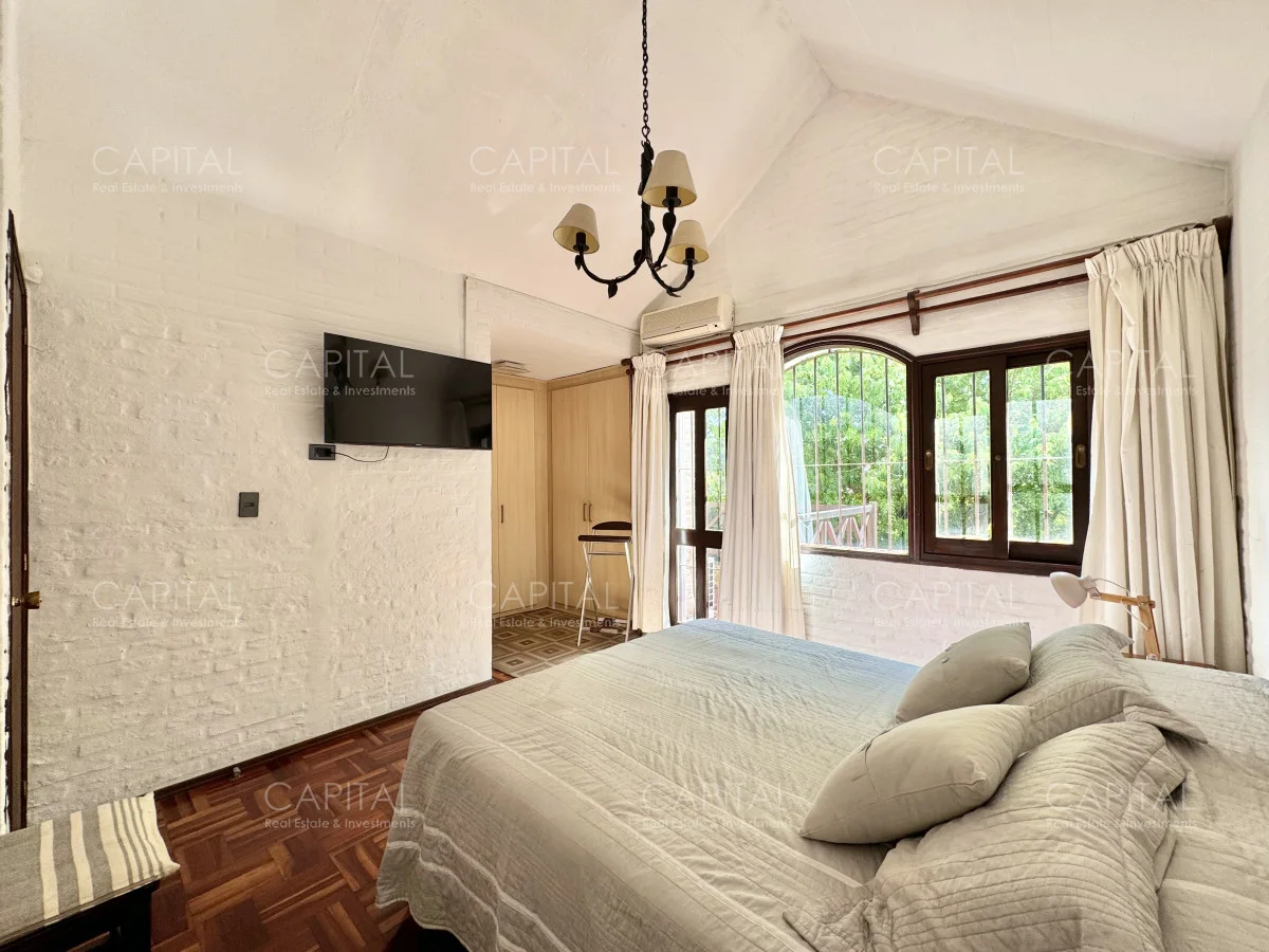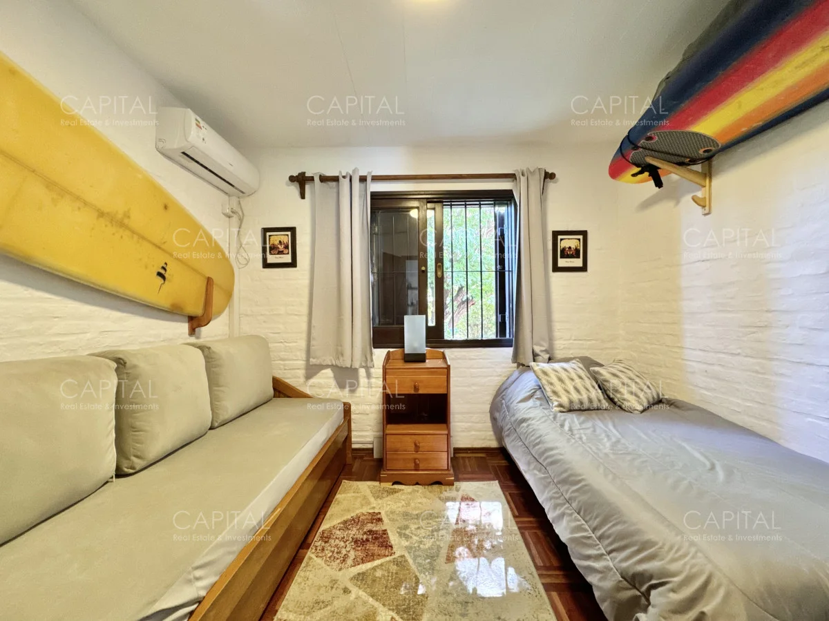 Casa de tres dormitorios, principal en suite, amplio living comedor con estufa a leña y cocina semi integrada con isla, jardin con piscina climatizada y barbacoa completa cerrada. Ubicada en un entorno tranquilo lleno de verde a dos cuadras y media de la playa, próxima a zonas comerciales. Ideal Para vacacionar o vivir todo el año