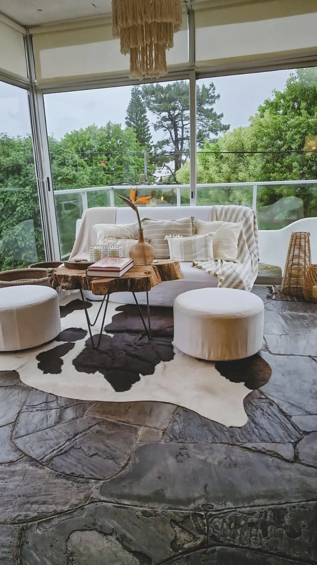 El espacio social destaca por su decoración, pisos de piedra, textiles suaves y detalles que generan un ambiente acogedor ideal para disfrutar los días de verano.