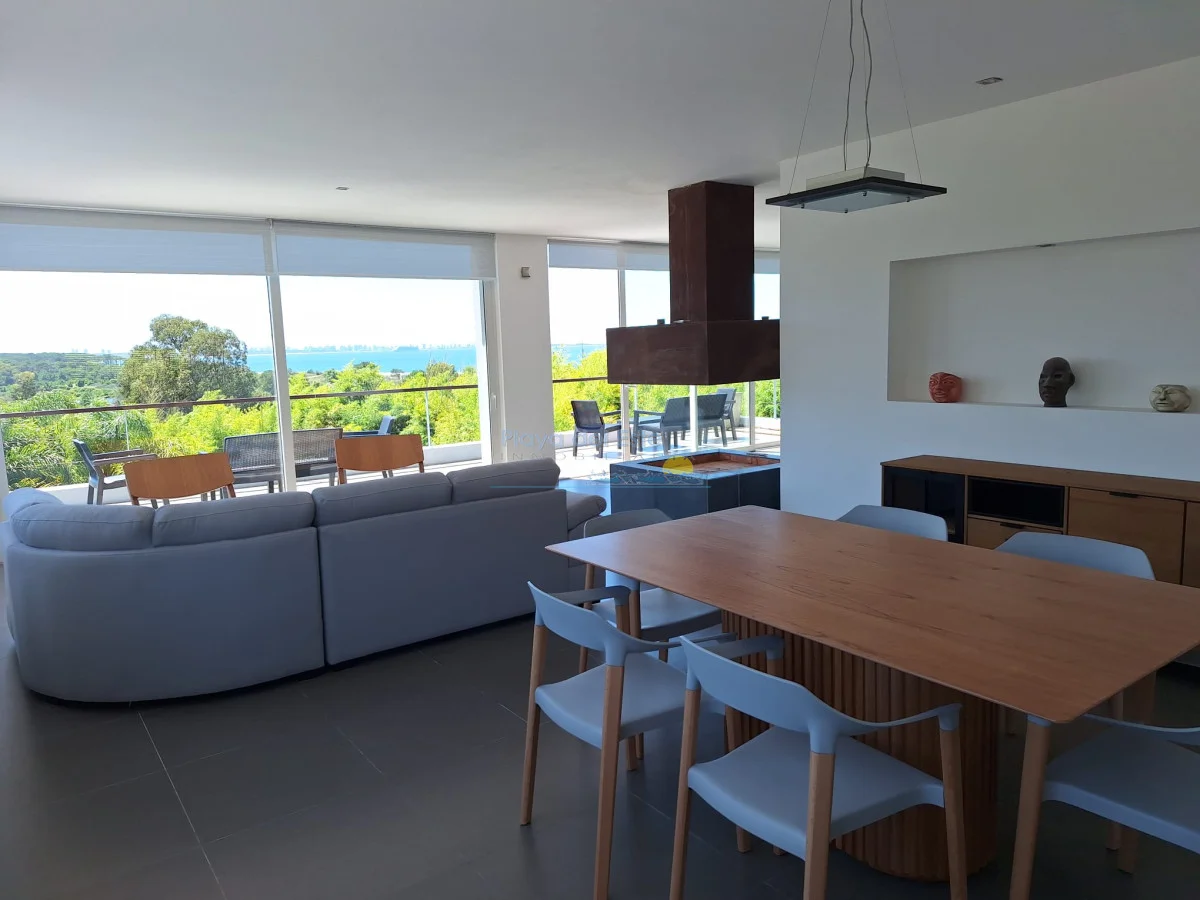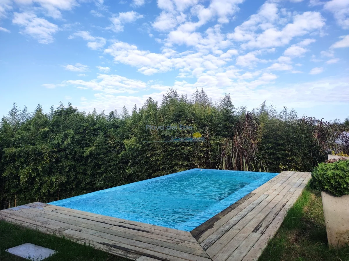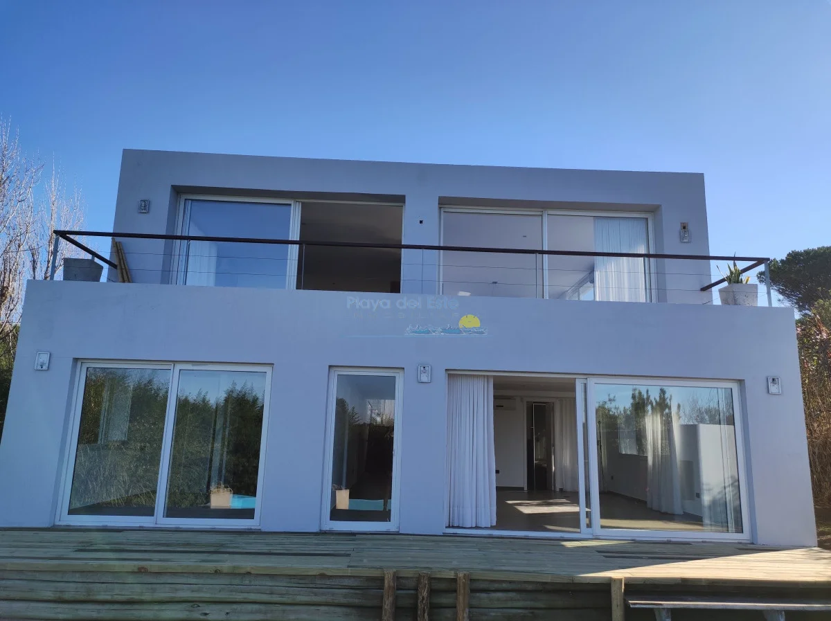 Una casa de la mas alta calidad constructiva con paredes dobles, aberturas de PVC alemán con vidrio doble, techo de hormigón, una casa con terraza con vista al mar, la isla Gorriti y la península de Punta del este, una piscina infinita, parrillero techado.