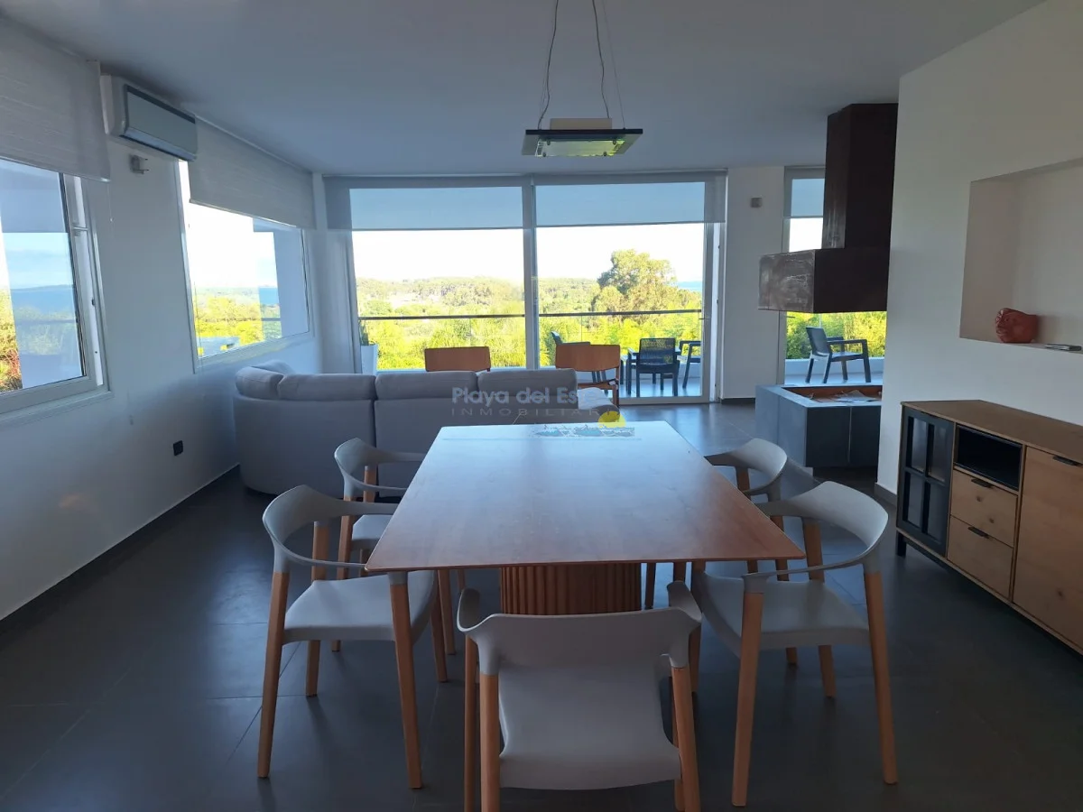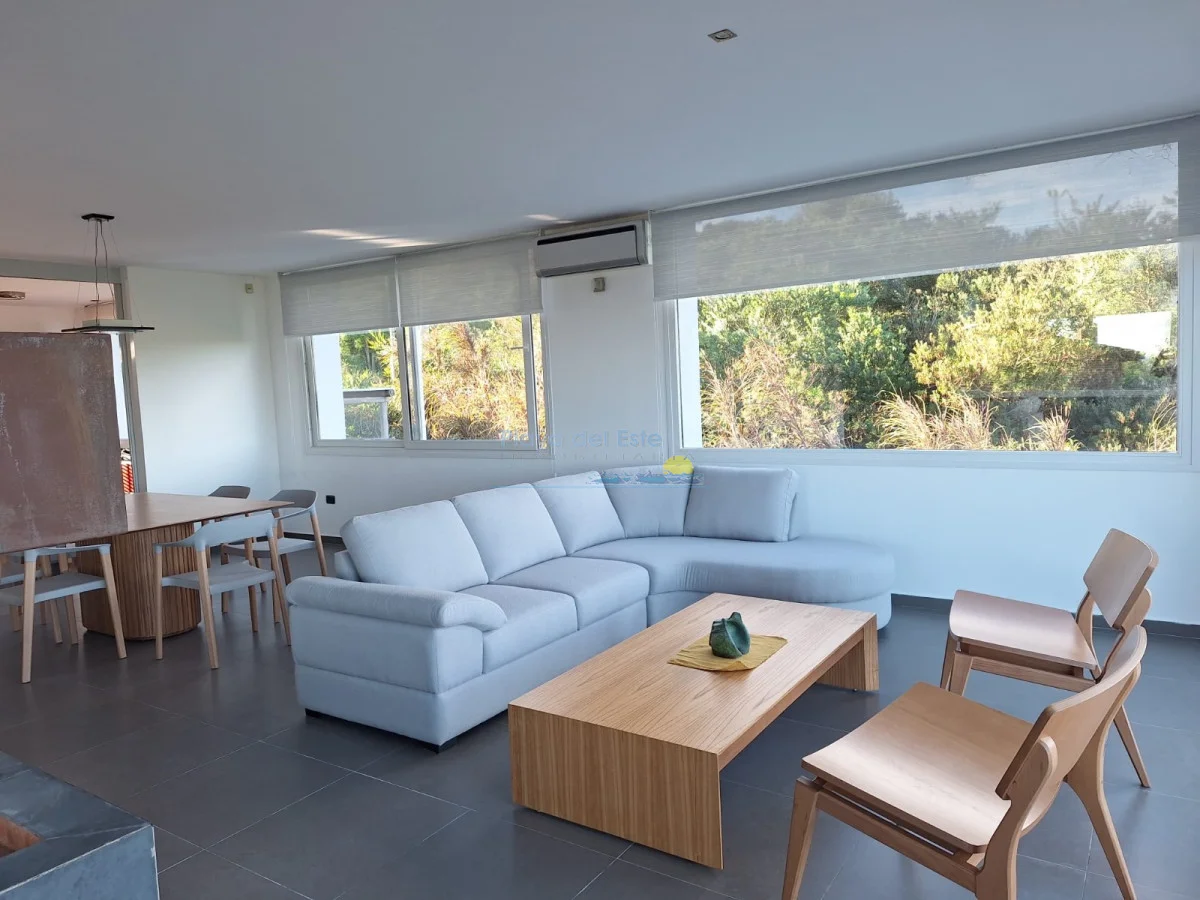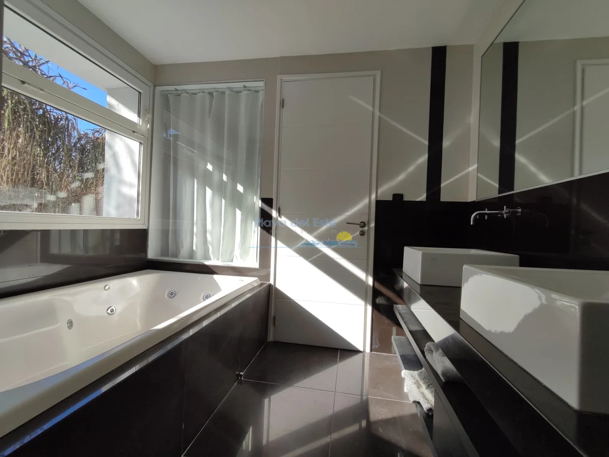 Una casa de la mas alta calidad constructiva con paredes dobles, aberturas de PVC alemán con vidrio doble, techo de hormigón, una casa con terraza con vista al mar, la isla Gorriti y la península de Punta del este, una piscina infinita, parrillero techado.