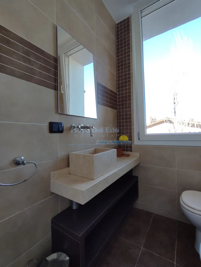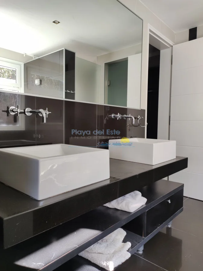 Cuenta con 3 dormitorios en suite, 2 de ellos con vestidor, mas un baño toilette para invitados, lavadero, la cocina con vista al mar, integrada con puertas corredizas para poder tener mas privacidad si quiere. Amplio living-comedor con estufa a leña y hermosas vistas al mar.