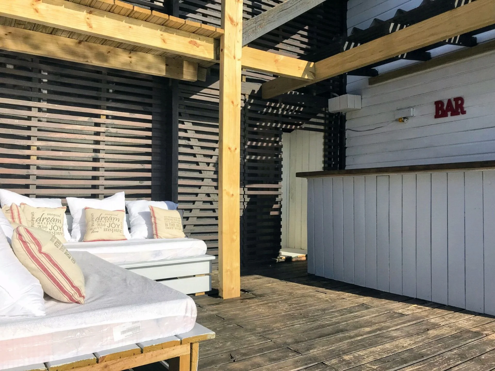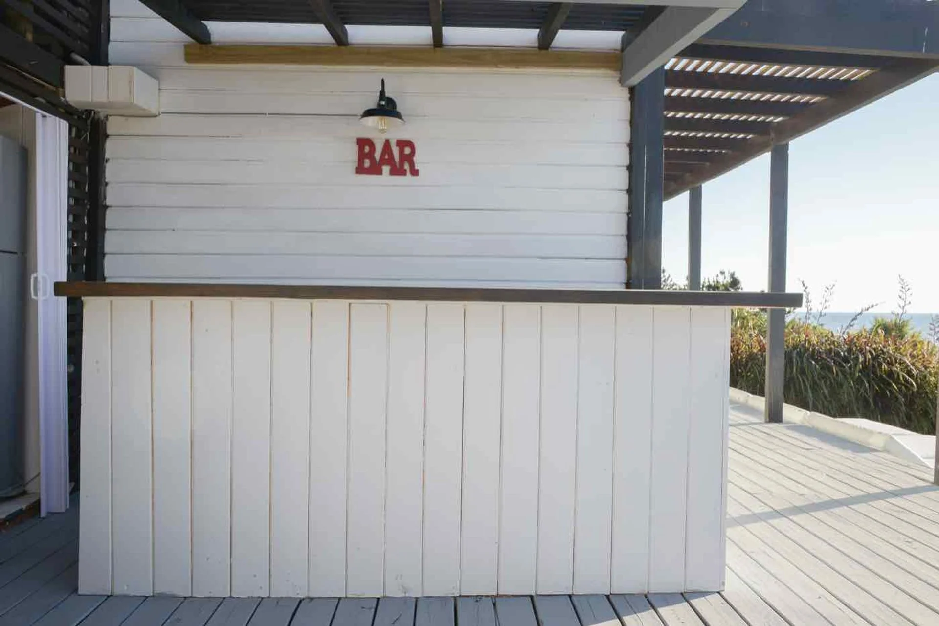Planta baja: 2 dormitorios en suite con vista al mar, piscina, bar, reposeras, parque con fogón y otra suite, dependencia o cuarto de huéspedes con baño completo, lavadero y secadero.