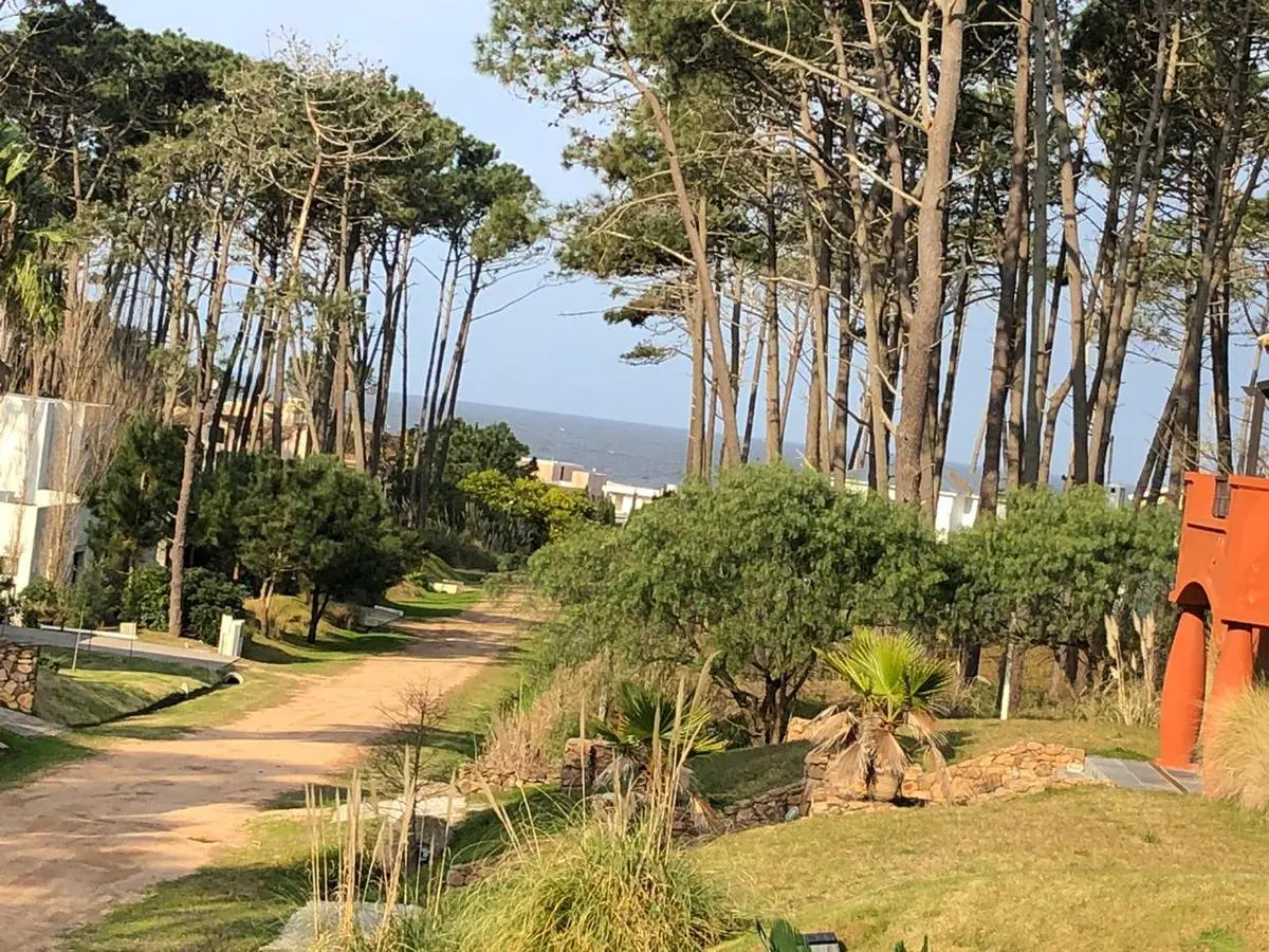Estacionamiento para autos y vista al mar.