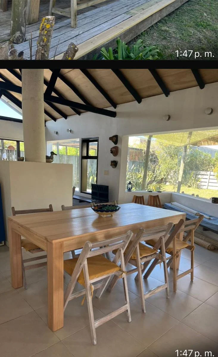 Casa con excelente ubicación, a una cuadra de la playa Brava. Posee tres dormitorios, uno en suite en la planta alta, con vista al mar. En la planta baja hay dos dormitorios que comparten un baño. Living comedor, cocina y dependencia de servicio. Un amplio deck rodea la parte de la casa que da al jardín, donde se encuentra el parrillero. This three-bedroom, two-bath home enjoys an excellent location. The views extend all the way to the beautiful Brava beach. The interior offers a living and dining room area, a kitchen, and maid´s quarters. A large deck adjoins the garden, surrounds the residence. Among the property´s additional amenities are a two-car garage and a barbecue area.