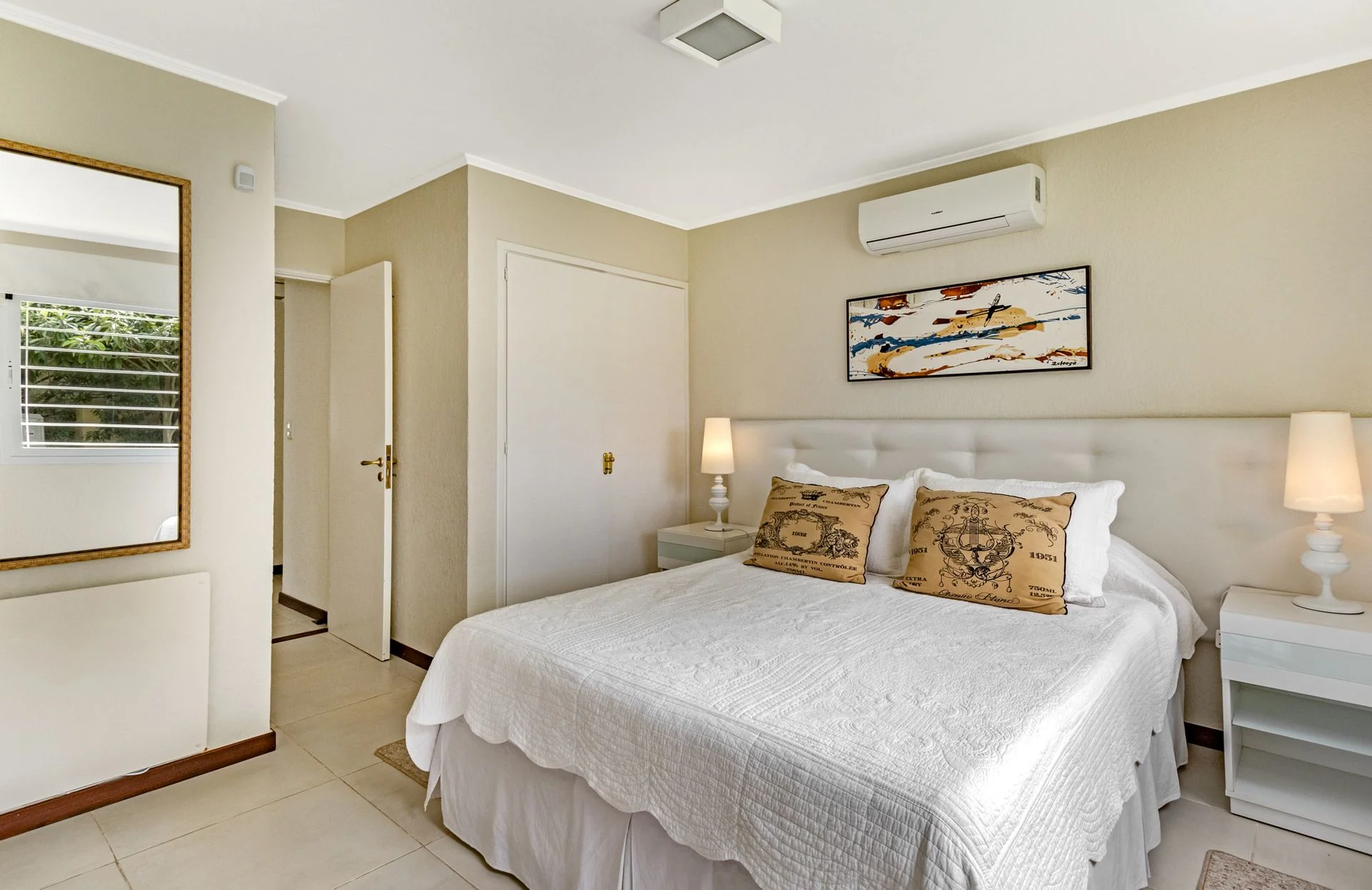 Exclusiva casa en alquiler de temporada en Playa Mansa, próxima al mar. Se desarrolla en un terreno de 1000 m2, de los cuales cuenta con 277 m2 construidos, en una zona residencial. La casa cuenta con todas las comodidades y todo nuevo. Posee un gran living con hogar a leña y comedor, cocina definida y lavadero. Tiene 4 dormitorios (dos en suite) más dependencia de servicio completa, 4 baños más toilette. Cuenta con aire acondicionado en cada habitación, piscina climatizada, parrillero, riego automático, iluminación exterior automatizada, cochera, perímetro cerrado. Ideal para disfrutarla durante todo el año, en familia y con amigos!