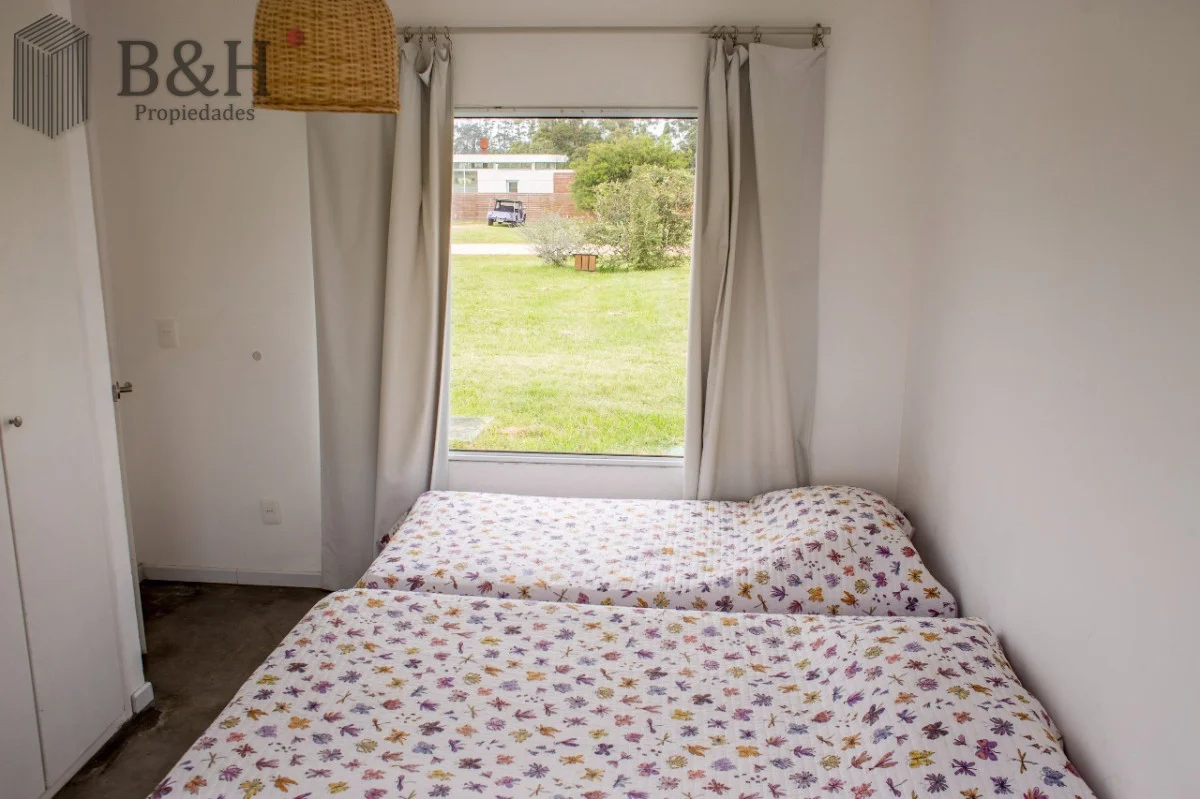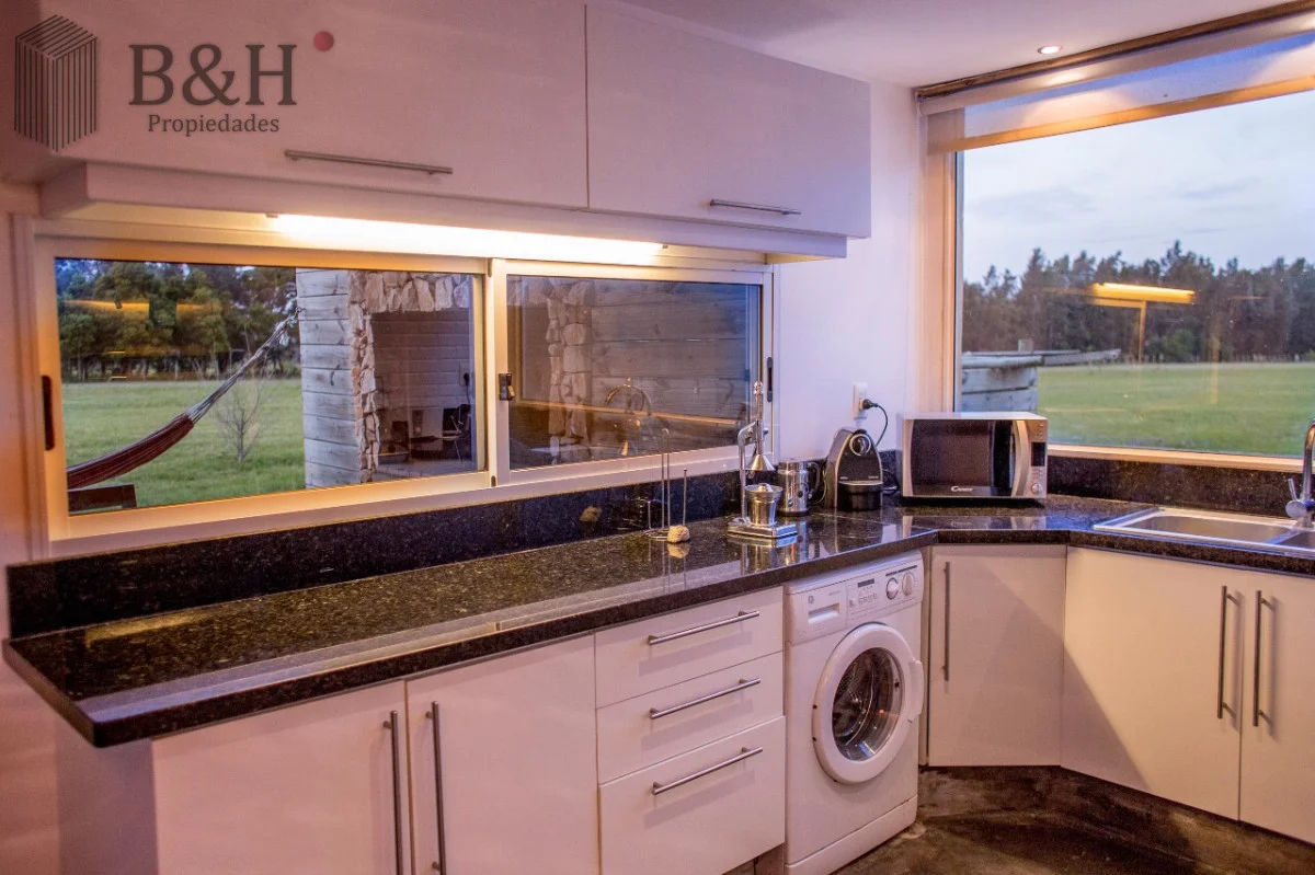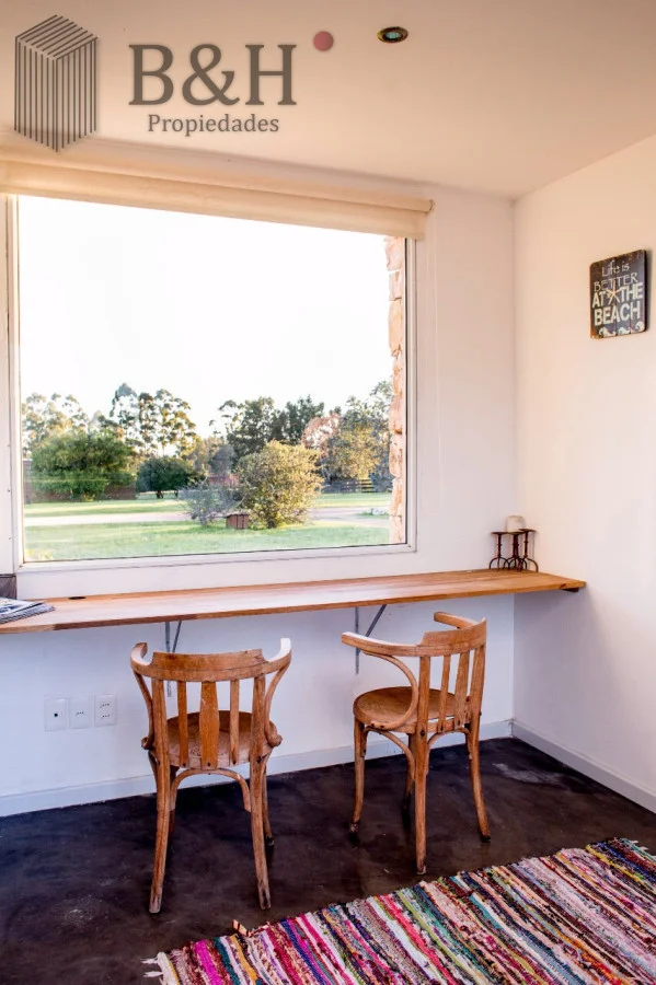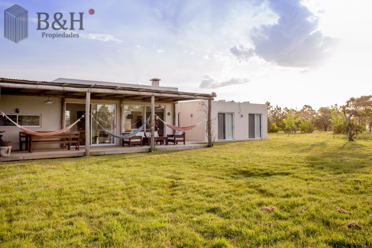 Cuenta con 3 Dormitorios, uno de ellos en suite, 2 Baños, cocina con barra, living comedor, parrillero y estacionamiento. Aire acondicionado en todos los dormitorios y en living. Galería muy cómoda techada con parrillero. Equipamiento: Aire acondicionado - Estufa a leña - T.V. - Heladera - Microondas. Ubicada cerca del Club House. Terreno : 5000 m2 Edificado : 200 m2 Amenities Seguridad 24 hs Red Eléctrica Semi-Subterránea Red de Agua Propia Club House Restaurante Huerta Orgánica Piscina Sectorizada Colonia de Verano Casa de Huéspedes Cancha de Tenis Cabalgatas Separación de Residuos Kayaks Playita Asadores Referencia Interna : Tera-615