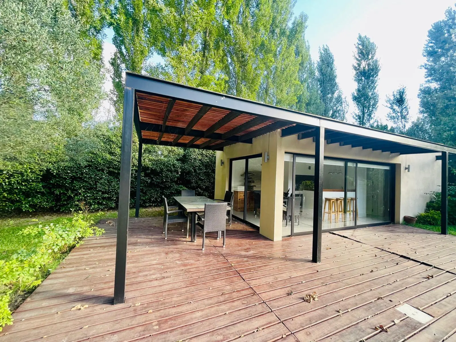 Se puede disfrutar en el Jardín privado 2 Parrilleros en torno a la piscina y reposeras.