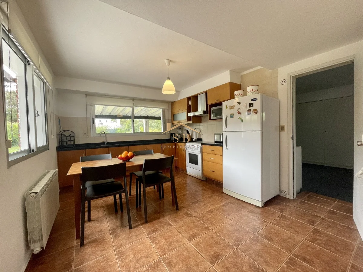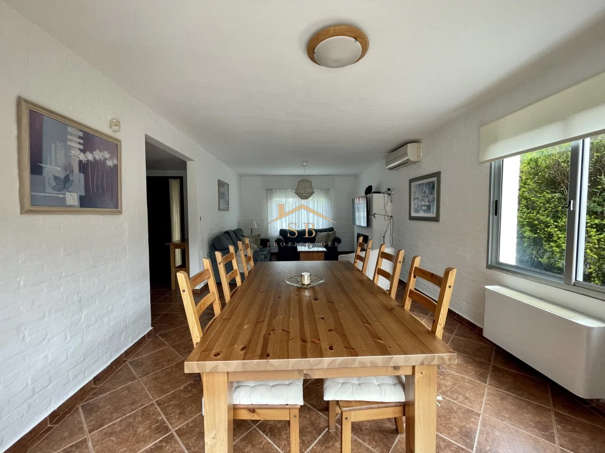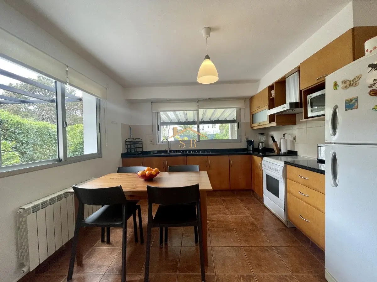 Alquilo casa en excelente punto del balneario, a solo 200mtrs. del mar. La casa está distribuida en dos plantas y cuenta con una gran barbacoa y piscina, (perímetro totalmente cercado y seguro) Comodidades: -Amplio living-comedor con estufa a leña -Cocina definida -Toilette en planta baja -3 dormitorios, (todos en la segunda planta y uno es en suite con vestidor y balcón -Garage con capacidad para 2 autos -Barbacoa y piscina Consulte con nuestros asesores. Referencia Interna : Tera-484