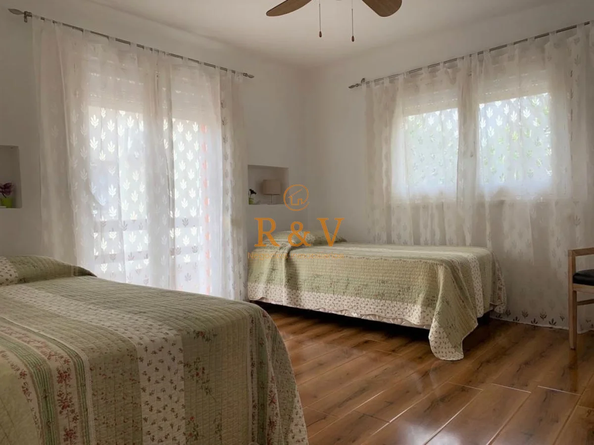 Cómoda propiedad de ambientes amplios y luminosos. Cuenta con un espacioso living comedor con muy buena luz natural y dos estufas a leña. Cuatro dormitorios en planta alta, con dos baños, uno de ellos en suite; más dependencia de servicio con baño en planta baja (el mismo también puede utilizarse como toilette). Gran cocina bien equipada con comedor diario y área de lavadero en el exterior.