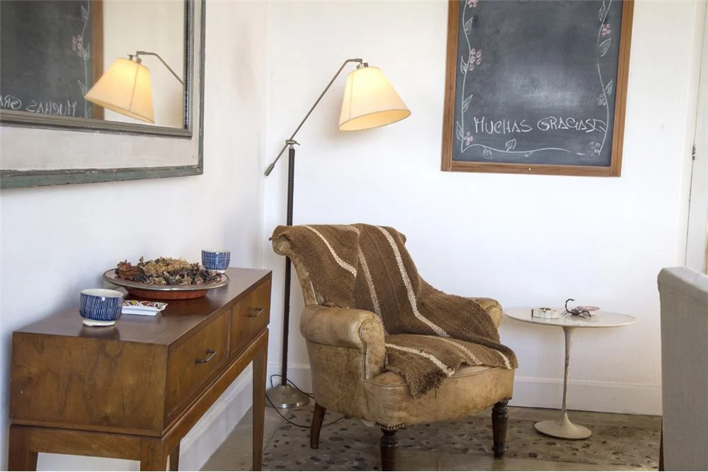 Living con hogar a leña y muy linda vista despejada a jardin y entorno verde, comedor, y sala de lectura.