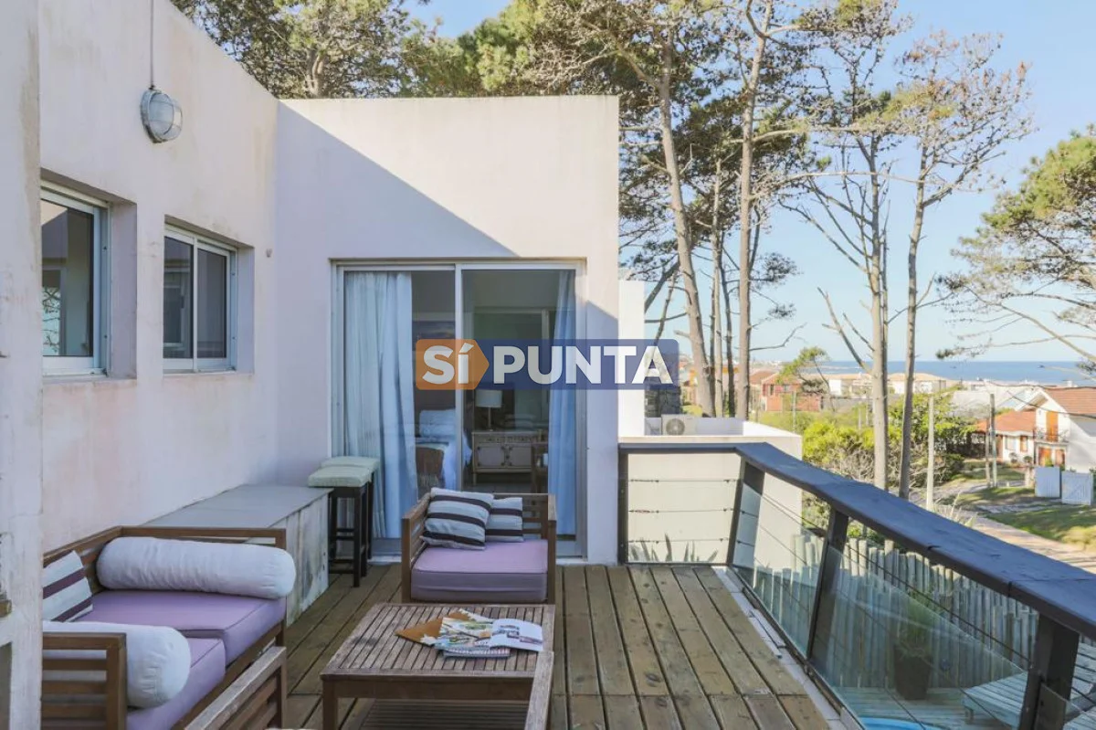 Muy linda casa a tan solo una cuadra del mar, hermosa vista desde terraza. Ubicado a 100 metros del Mar. Cuenta con 5 Dormitorios 4 Baños 4 Suites , con capacidad para 10 personas , 8 camas Cocina : Cocina, Living Comedor Equipamiento : Microondas - T.V.Cable - WiFi - Lavarropas - Ropa Blanca - Heladera Con Freezer - Tostadora - T.V. - Terreno : 600 m2 Edificado : 235 m2 Consulte con nuestros asesores. Referencia Interna : Tera-20