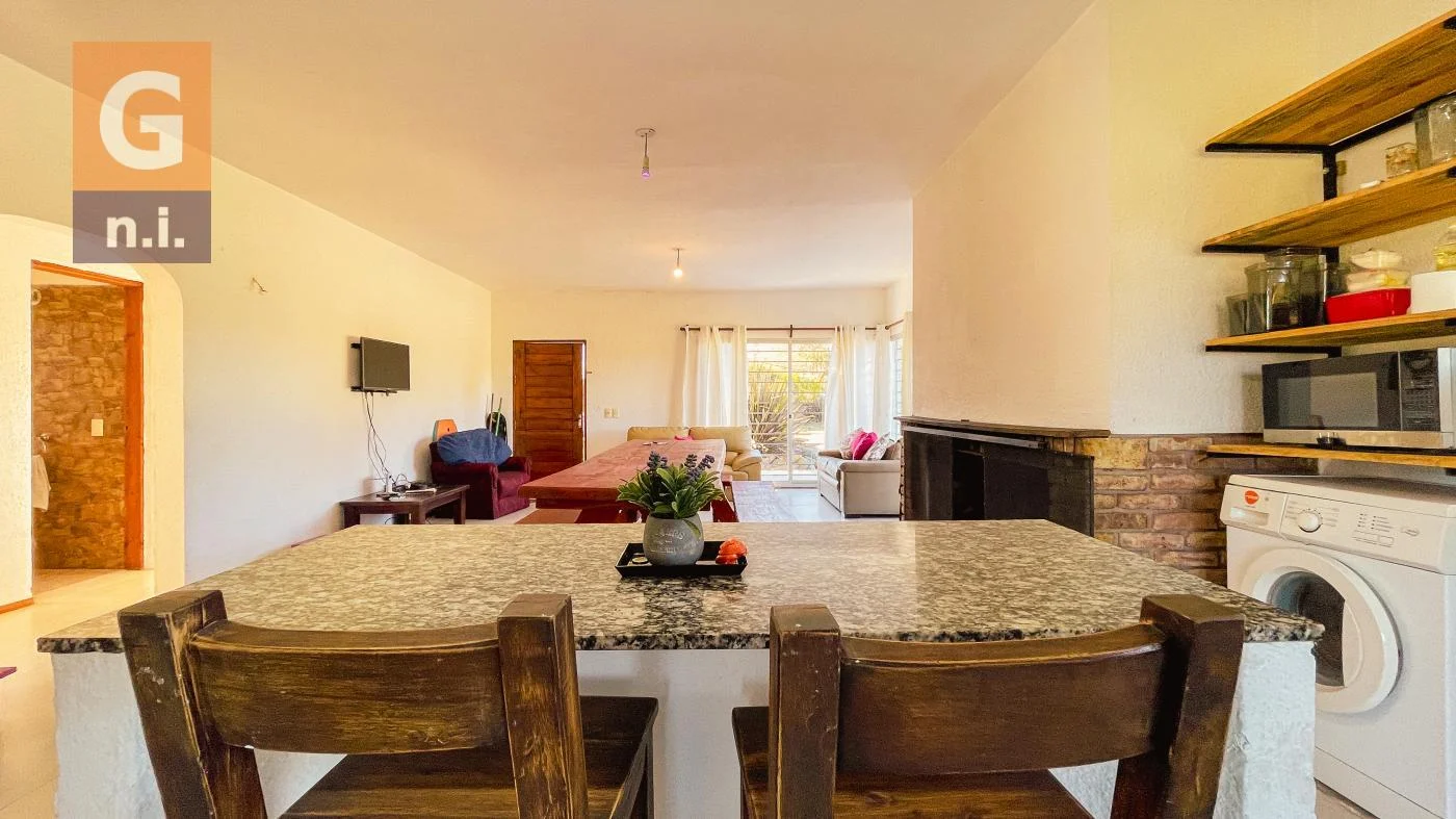 Distribuida en amplio living-comedor con estufa a leña, cocina integrada con isla, 2 dormitorios y baño completo.