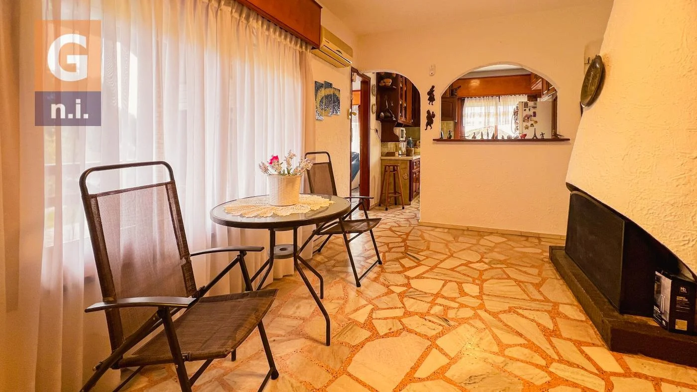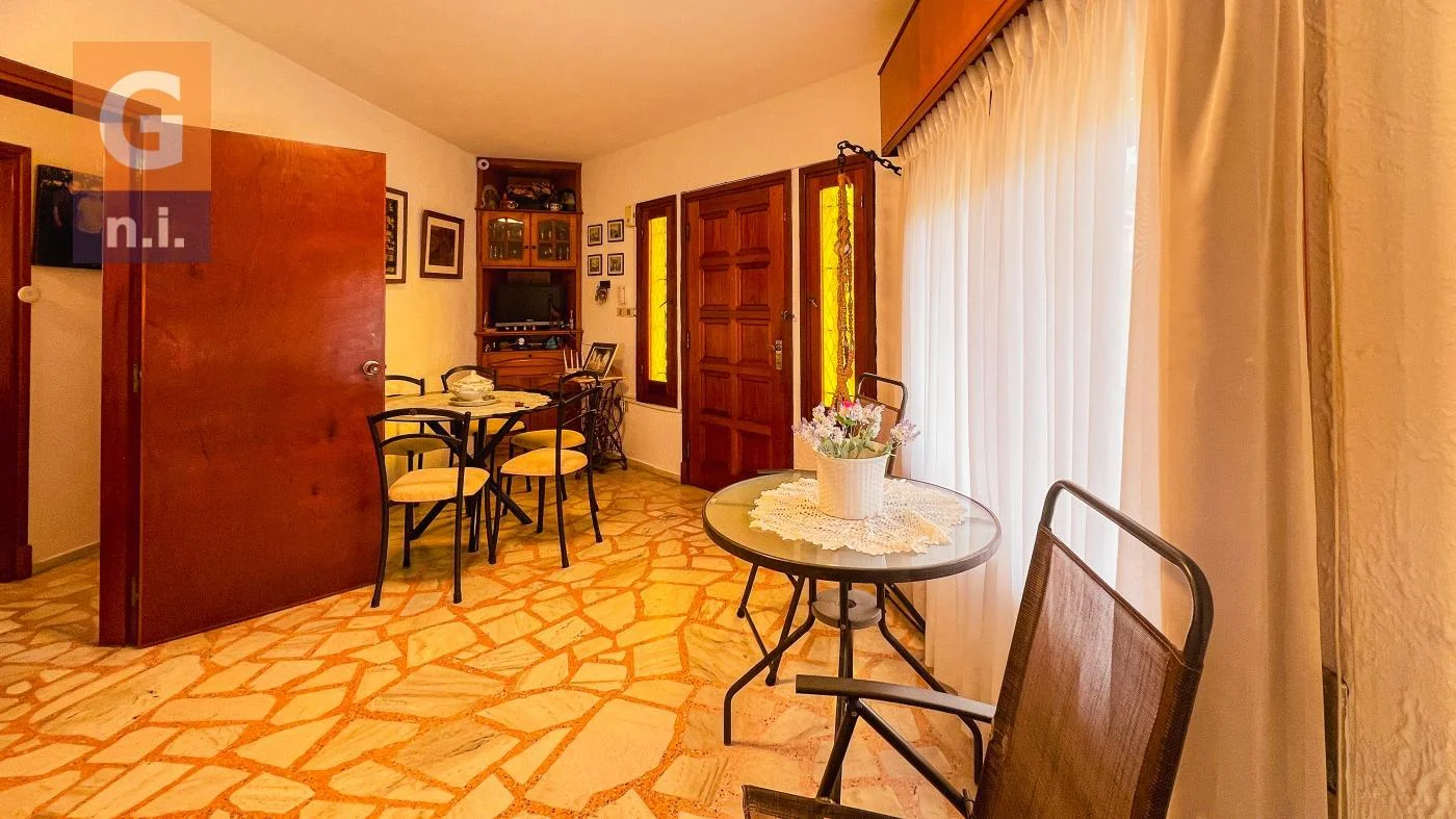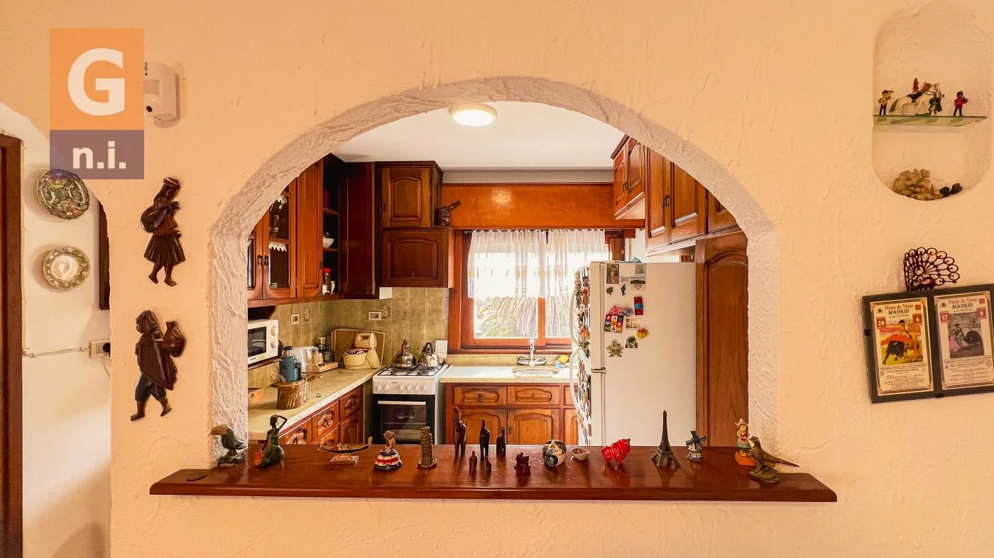 La casa principal, ubicada en planta alta, cuenta con un amplio comedor con estufa a leña, seguido por una cocina semi integrada que conecta con un cómodo parrillero cerrado. Una pequeña escalera exterior nos lleva a una terraza ideal para disfrutar del entorno. Además, dispone de un acogedor living, un pasillo distribuidor, dos dormitorios (uno de ellos matrimonial) y un baño completo.