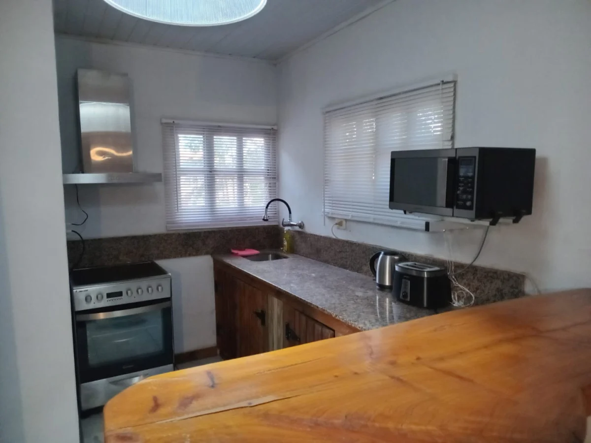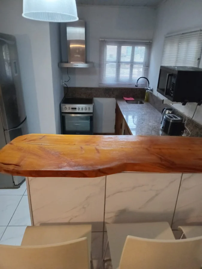 La propiedad cuenta con una amplia cocina que se integra perfectamente al living y comedor, creando un espacio ideal para compartir momentos inolvidables con amigos y familiares. Los grandes ventanales permiten que la luz natural inunde cada rincón, ofreciendo vistas al entorno boscoso que rodea la casa.