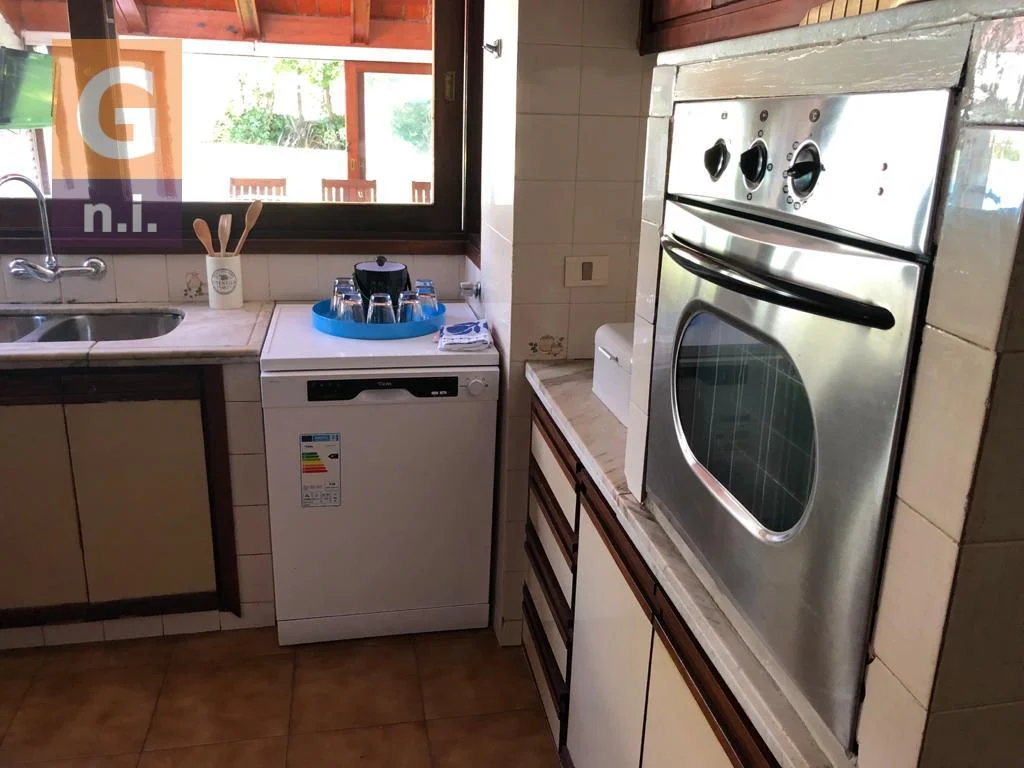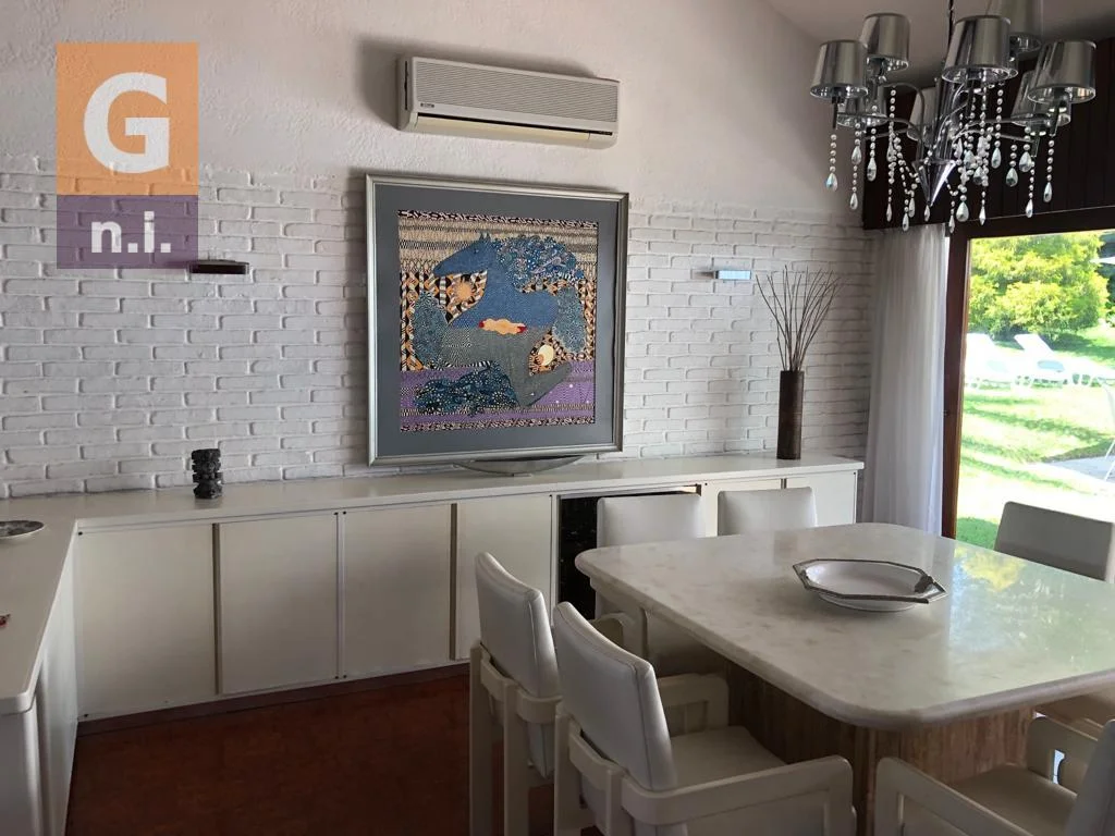 La casa principal se distribuye en 5 dormitorios, 6 baños (2 en suite), Jacuzzi en baño principal, sala de estar, living con estufa a leña, comedor y dependencia de servicio. Posee además amplia barbacoa cerrada, conectada con la cocina y garaje cerrado para dos autos.