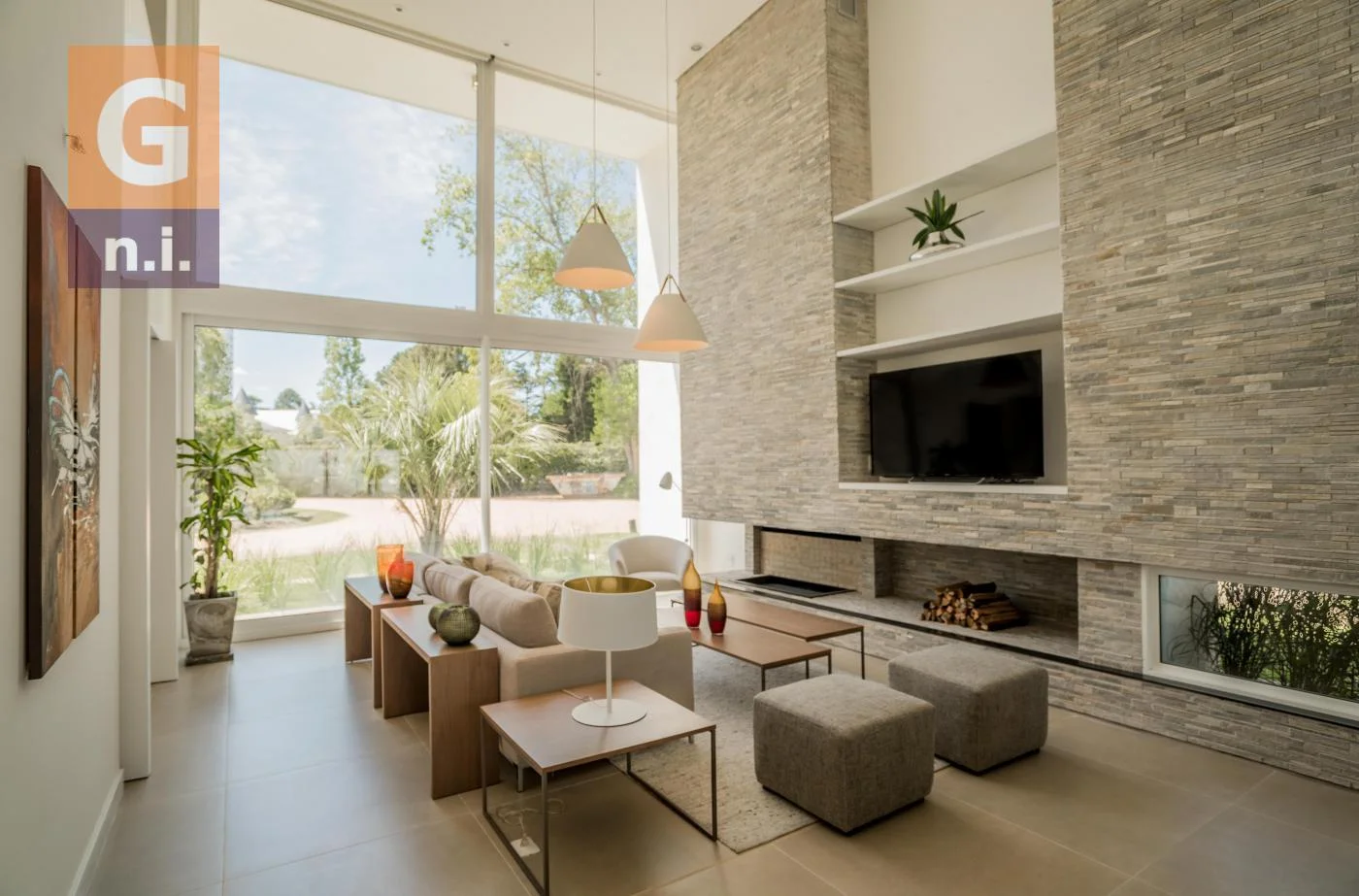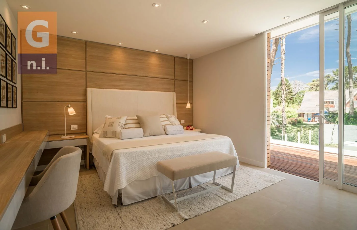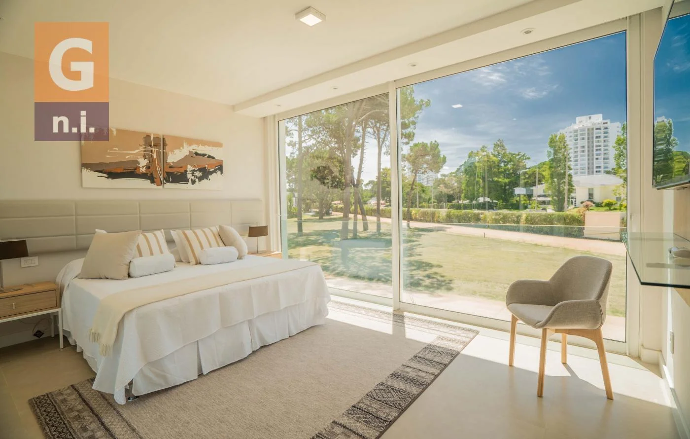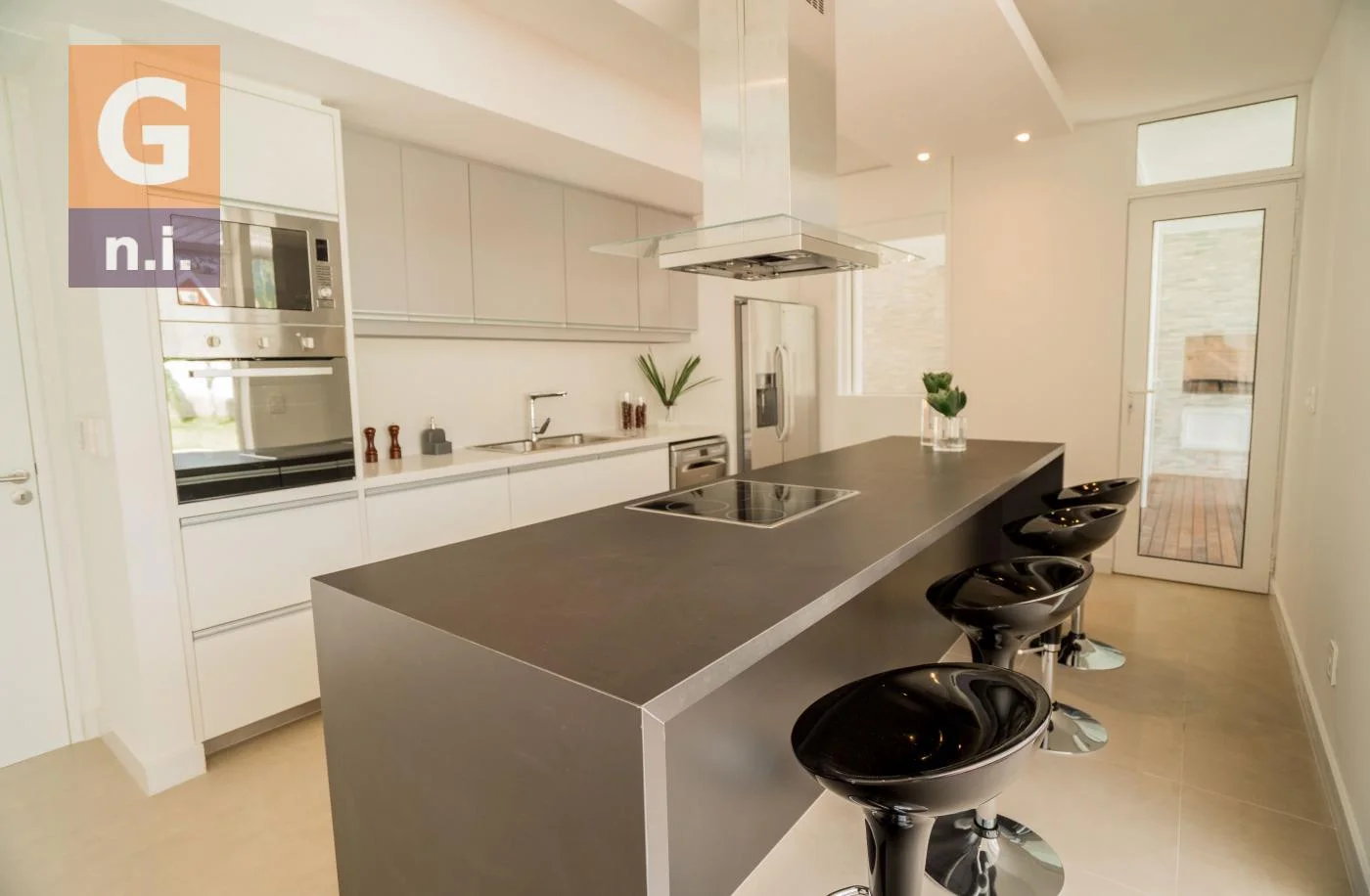 Casa de moderna arquitectura A ESTRENAR!! Ubicada en Barrio Privado a minutos de la Península y a metros de Playa Mansa. Una arquitectura fresca, de espacios amplios y luminosos. Desarrollada en dos plantas, la propiedad consta de cuatro dormitorios (vestidor en master suite), cuatro baños (tres de ellos en suite) y toilette. Gran living con estufa a leña, comedor, cocina con desayunador y dependencia de servicio con baño.